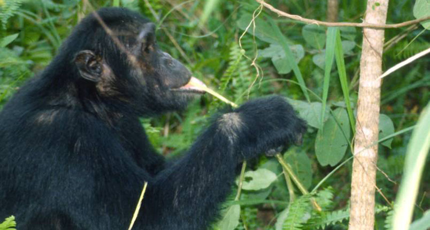 Chimps have their own remedy for an upset stomach. They chew the pith of the plant commonly known as bitter leaf. Only sick chimpanzee chew this plant’s pith, usually showing improvement after ingesting it. After scientists made these observations, it was discovered that African herbalists prescribe this plant to local people to treat malaria, schistosomiasis, dysentery, and other intestinal parasites, and that the pith of bitter leaf contains various parasite-fighting compounds.