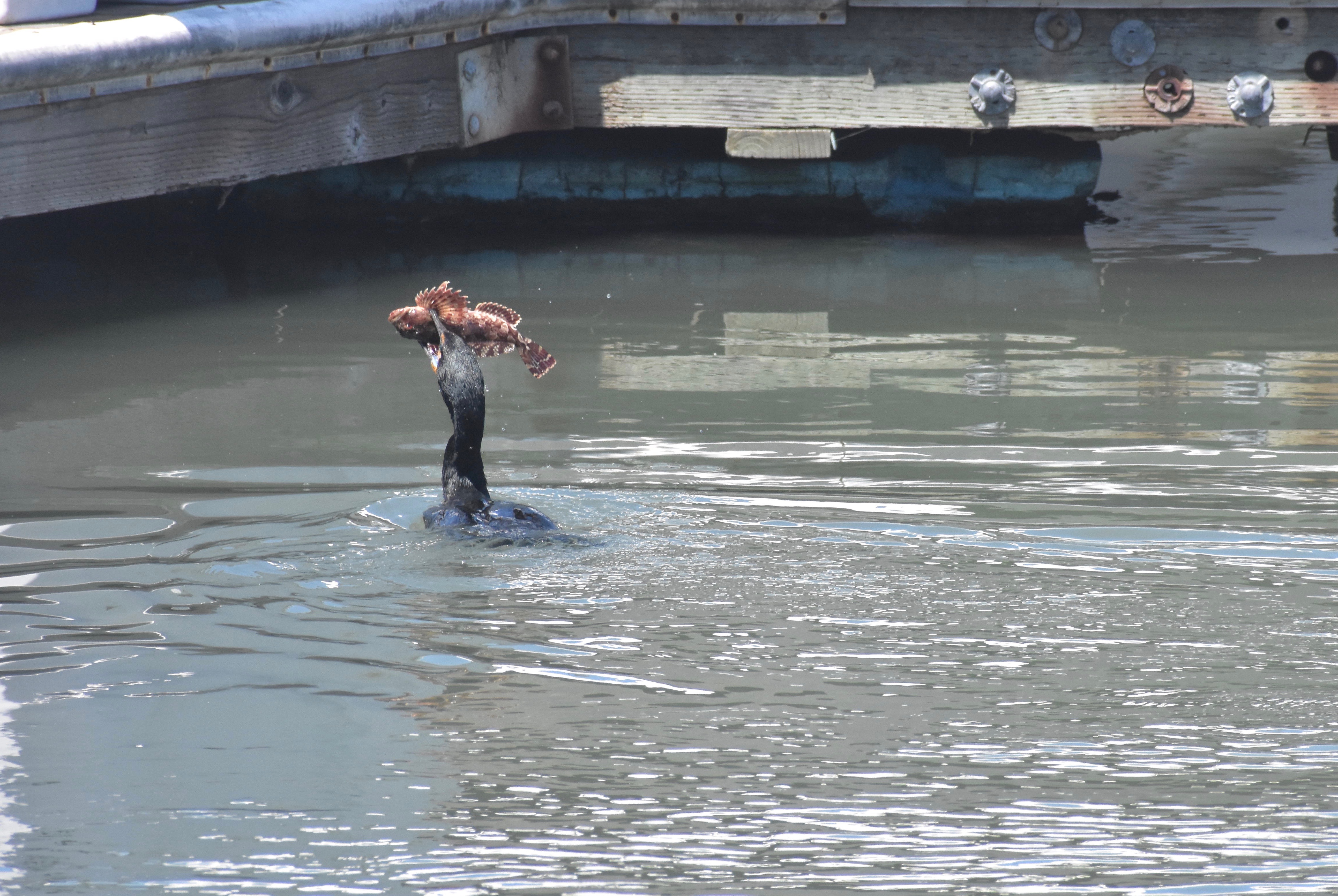 Field Frame Field Frame Friday: Biting off a little more than you can chew (or swallow)! Posted by The Ethogram on December 21, 2018December 12, 2018 This Brandt’s cormorant (Phalacrocorax penicillatus) may have caught quite a feast, but the brown rockfish (Sebastes auriculatus) is putting up a good fight with some spiny fins. [Photo by Alycia Drwencke; Caption by Karli Chudeau] Share this: Click to share on X (Opens in new window) X Click to share on Facebook (Opens in new window) Facebook Click to email a link to a friend (Opens in new window) Email Like Loading... Related