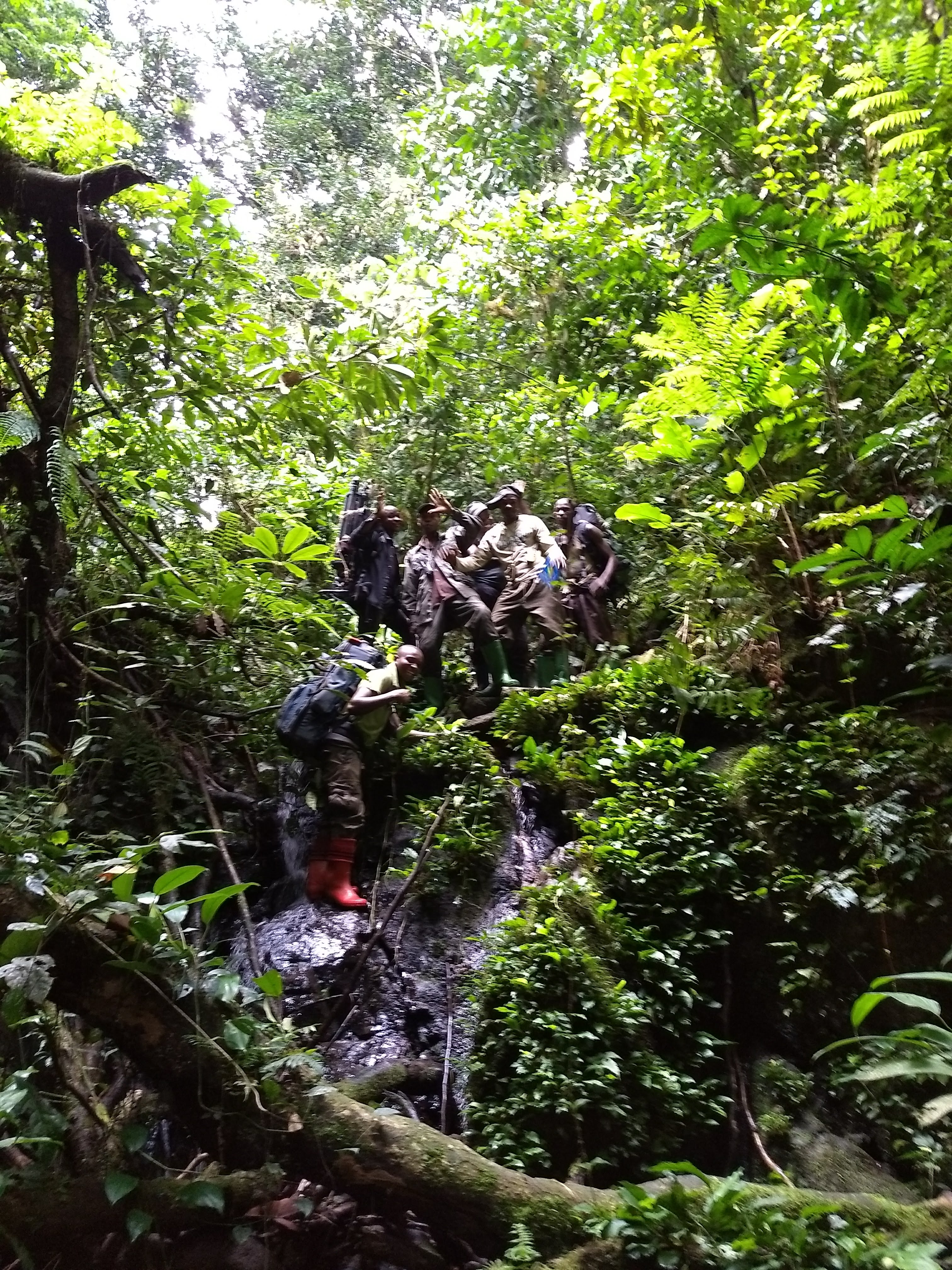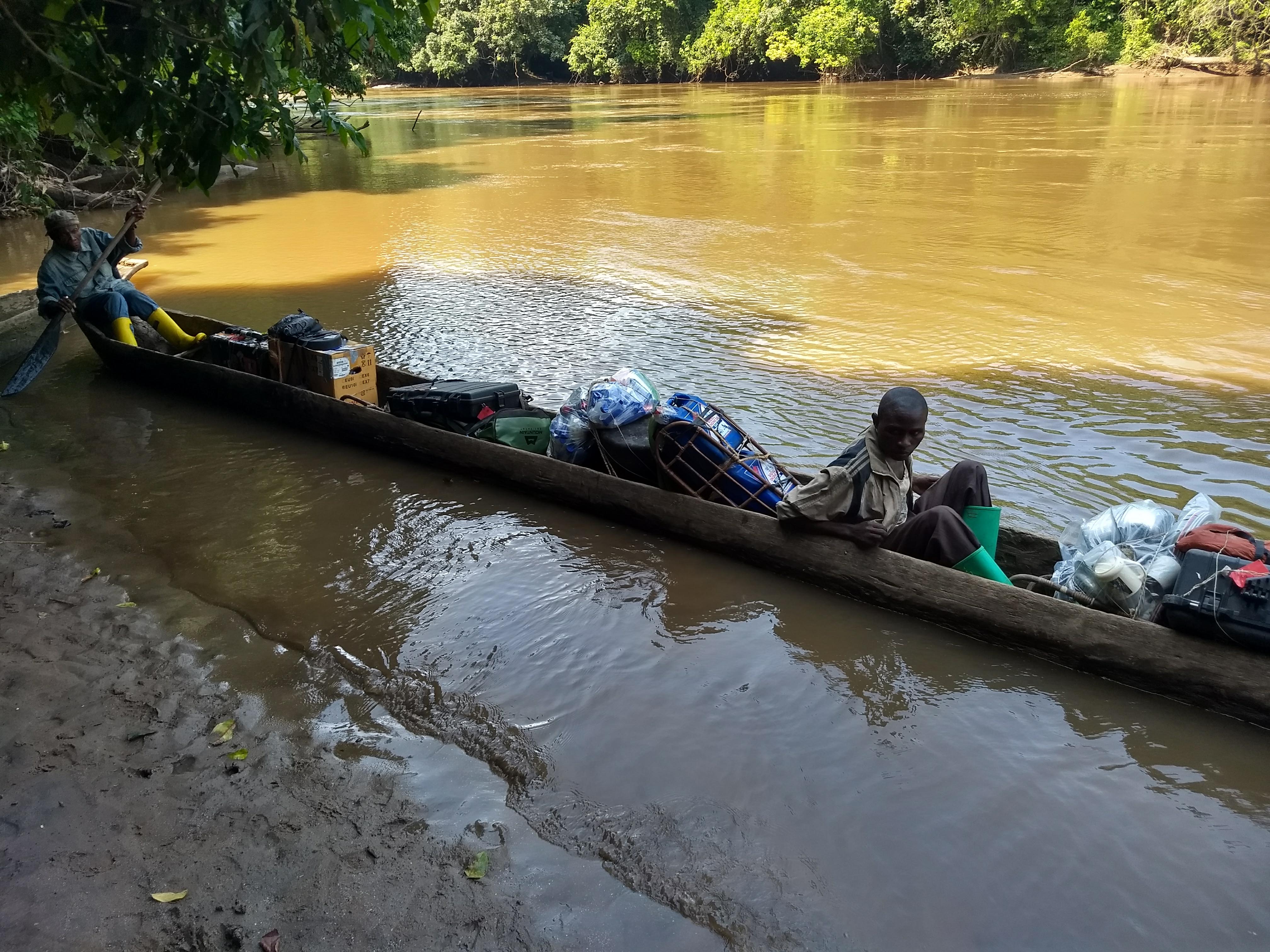 The man in front of me stood proudly gripping the legs of the African green pigeon (Treron calvus) he had recently captured. We had just arrived at our first stop on a 2-day trek out to a remote campsite in the lowland tropical forests of eastern Democratic Republic of Congo (DRC). Our plan was to track a group of wild Grauerโs gorillas (Gorilla beringei graueri) for a week. My particular research interests mean that I actually spend a lot of time studying gorilla dung. To many, this work might seem less than gloriousโฆbut, I love poop. Poop provides scientists with a wealth of knowledge about animals that we may never see. For my PhD dissertation, I am trying to understand how parasites are transmitted among wild gorilla social groups. These parasites include nematodes that live in the gut, so when the worms reproduce, their eggs end up in their gorilla hostโs dung. That means I have to process a LOT of fecal samples. At one of my field sites, this entails carrying a mobile wet lab into the depths of a tropical African rainforest. We had just crossed the Loa river in a pirogue (French: dugout canoe), which required several trips because our equipment included, amongst other things, food for one week for a field team of about 15 people, a drone, a microscope, camping equipment, and of course, a giant bag of collection tubes.