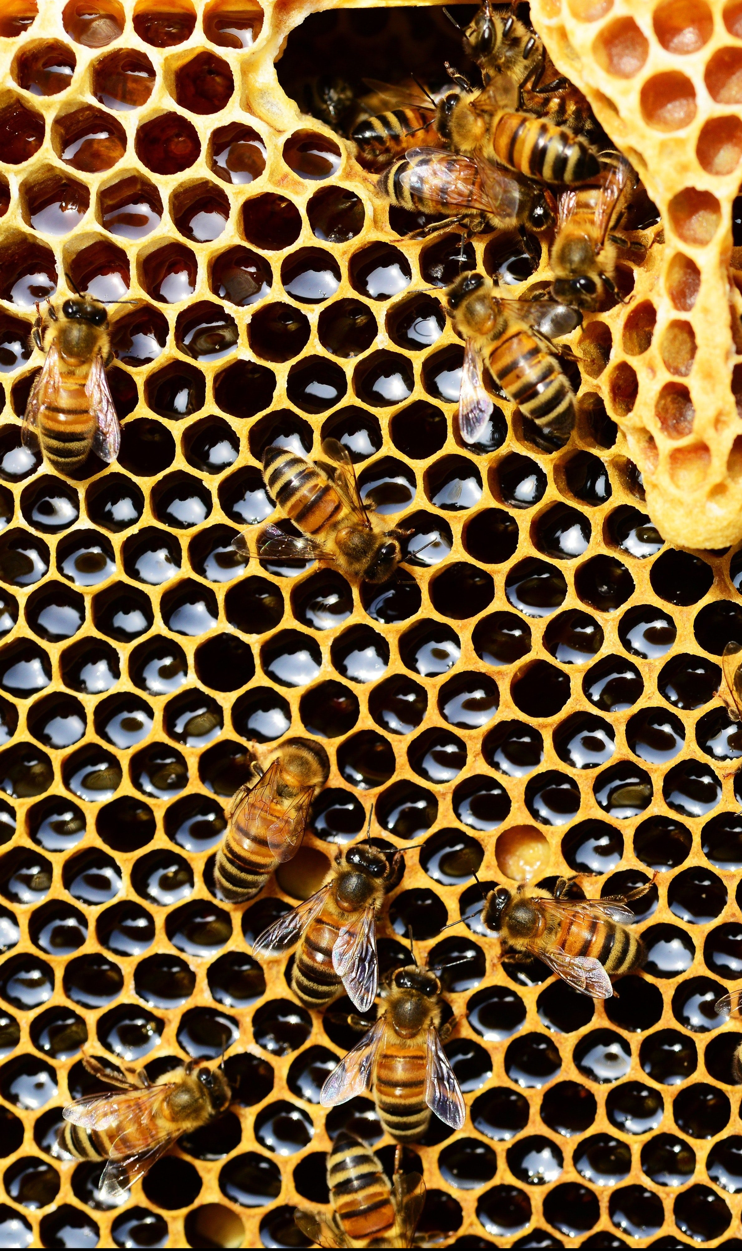 Perhaps surprisingly, only about 5 percent of bee species produce honey! Honeybees – while not the only bee species that produce honey – make up only 7(ish) species of the 20,000+ known species of bees [1]. Honey is produced to serve as a food source during the colder winter months. However, most bees don’t live more than a few weeks, so making and storing honey isn’t necessary for their survival. Alternatively, honeybee queens can live for 3-4 years; these bees spend much of the fall collecting nectar from various flowers. This nectar, after mixing with an enzyme in the bees’ mouth, is then stored in honeycombs (waxy, hexagonal cells). The nectar goes through a concentration process (sometimes aided by the bees themselves) and loses much of its water content. This evaporation process is essential for giving honey the antimicrobial properties that allow it to be stored almost indefinitely. These honey stores can then feed the colony throughout the winter months [2].