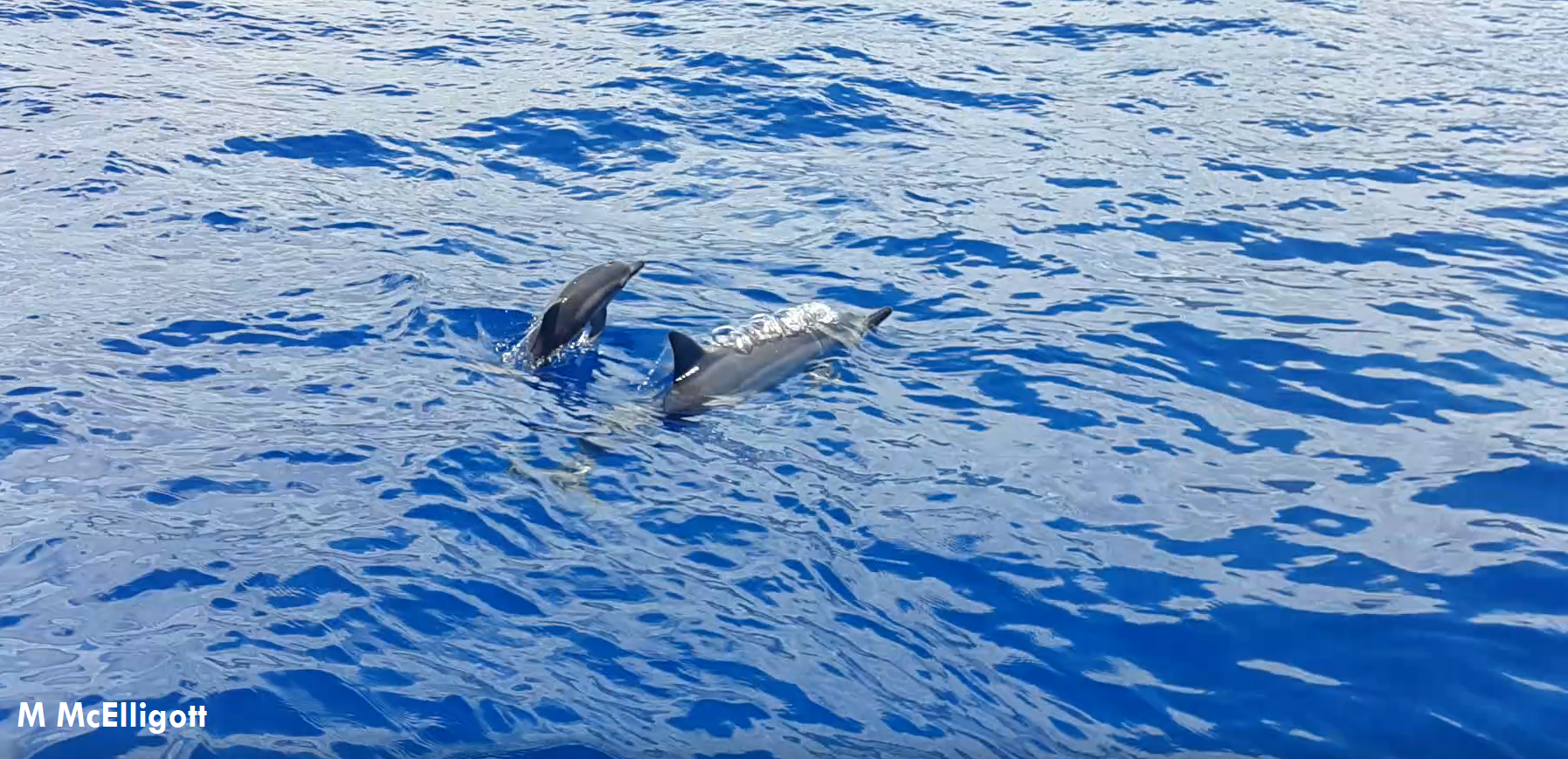 Vessel surveys provide excellent confirmation that a particular species is in a particular location, but there are limitations. If the sea-state is too rough, it can be difficult to spot the low profile of spinner dolphins. Weather can also prevent us from taking the boat out at all. We’re also limited to day-time hours and only see dolphins during the rather fleeting moment when they break the surface to breathe between 1-5-minute dives. Passive acoustic monitoring is a lovely complement to visual data, as it takes advantage of the vocal nature of spinner dolphins.