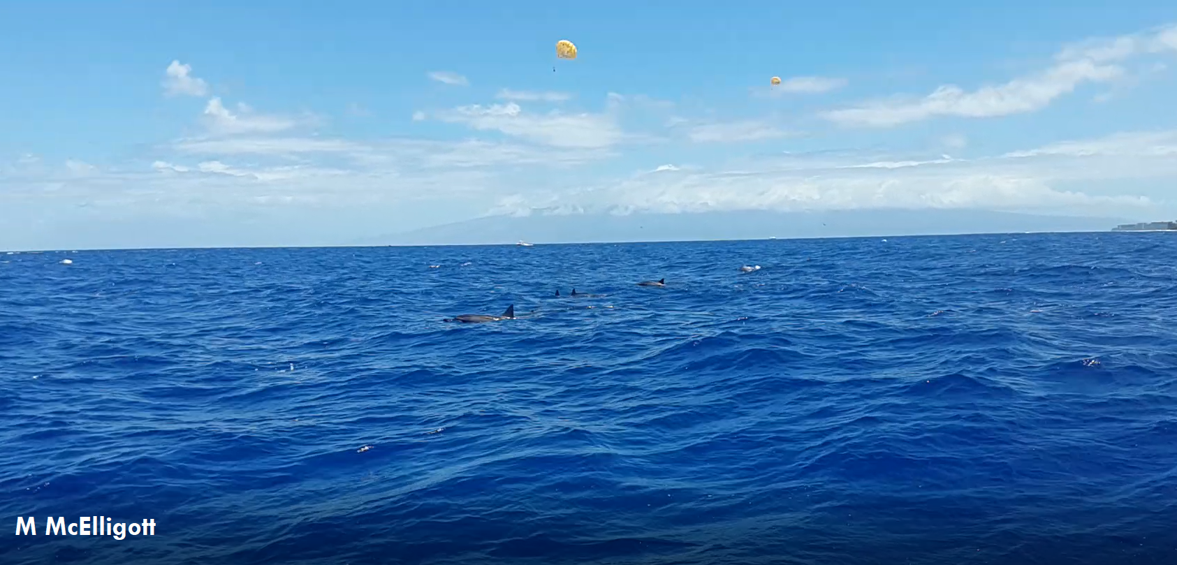 The downside of this daily routine is that it places dolphins in close proximity to human activity that can interrupt their rest. Cumulative effects of vessel traffic and swim-with-dolphin tours can reduce their foraging success at night (Courbis & Timmel, 2009; Heenehan et al., 2016a, 2016b; Danil et al., 2005). My research aims to identify areas throughout the Main Hawaiian Islands that are important resting areas for spinner dolphins. This knowledge can inform management of areas where human interactions with dolphins should be monitored to ensure harassment doesn’t occur during the day, so that dolphins can get enough rest to hunt successfully at night.