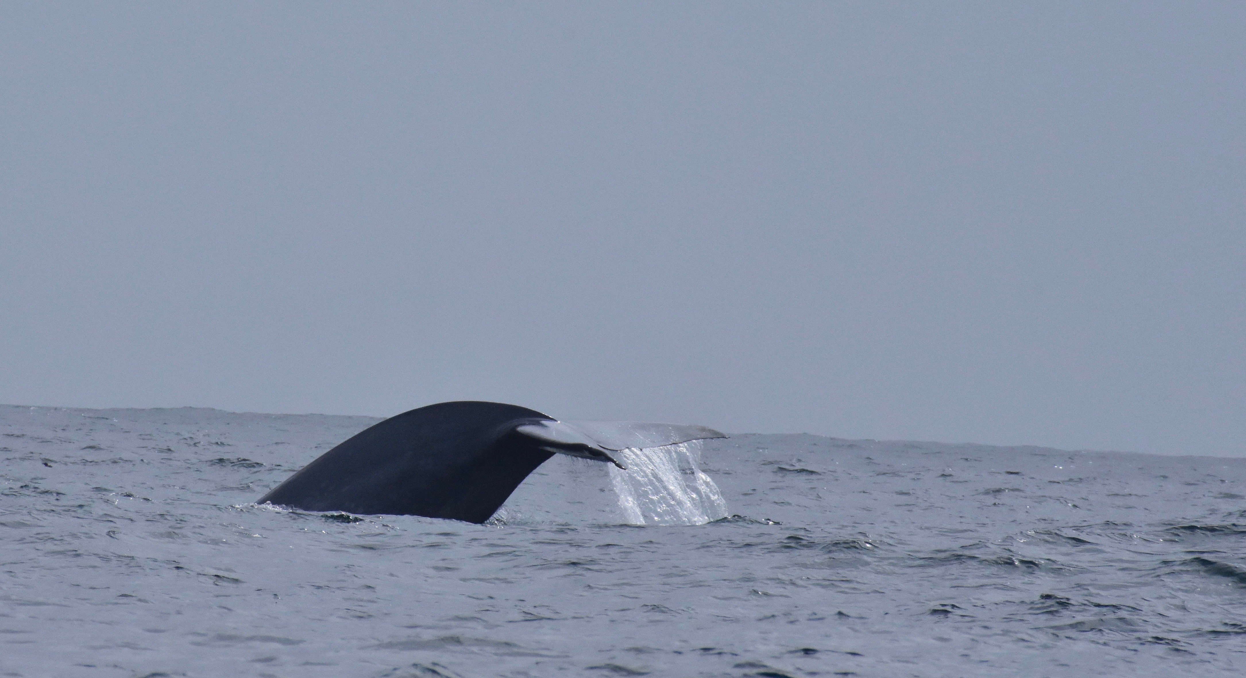 In a field that is dominated with hydrophones and listening to vocalizations, it is always great when researchers can snap a picture of whale flukes. Many whale individuals, including this blue whale (Balaenoptera musculus) can be identified by unique markings and shapes on their tail flukes.