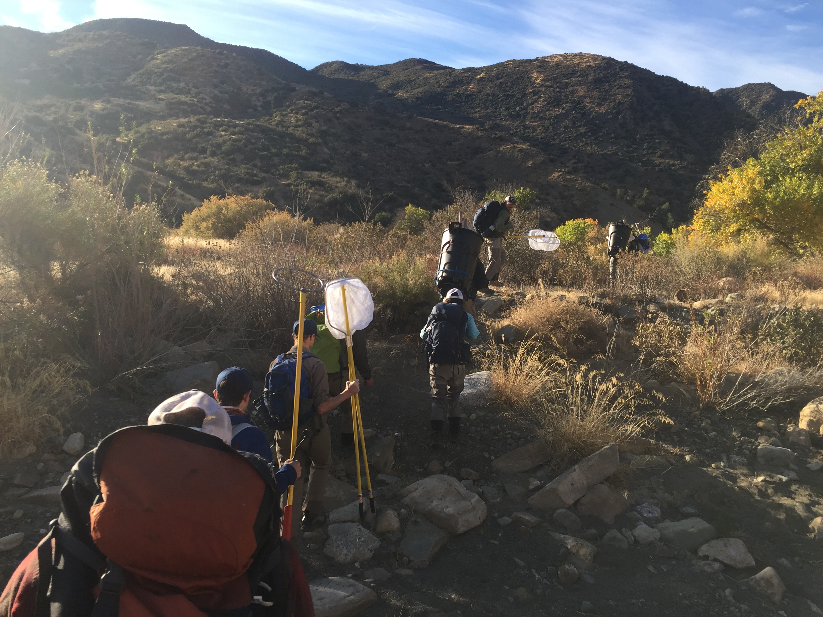 Just north of Los Angeles lies Piru Creek, a tributary of the Santa Clara River and native waters to Southern California coastal steelhead trout, a subspecies of rainbow trout. As part of a multi-agency collaborative effort, I was going to their native waters to participate in a mark-recapture study. This study allows us to mark the sampled fish with electronic tags that can be detected by receiving antennas we have installed in various locations throughout the creek. Our goal with the mark-recapture study is to get a better understanding of their life-history, population demographics, and behavior. This species of trout is unique in that they develop differently depending on their environment, those that stay in the freshwater system are considered rainbow trout and data will allow us to have a better understanding of the migration patterns of the rainbow trout, as they use different water systems at different life stages.
