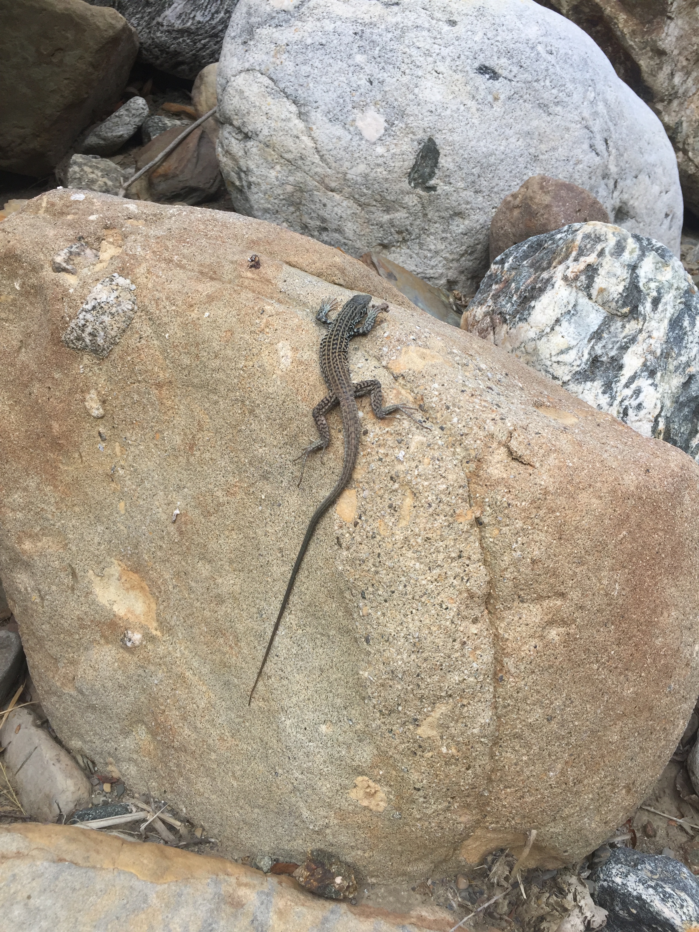 Contrary to my expectations, the hike in to our field site was stunning! Wading through the steep canyons offered spectacular views, and it was hard not to admire the biotic diversity that Piru Creek offered. My favorites included various sage scrub, whiptail lizards, and black bear…poop. While I didn’t actually see a bear, the abundance of scat let us know that they were indeed there.