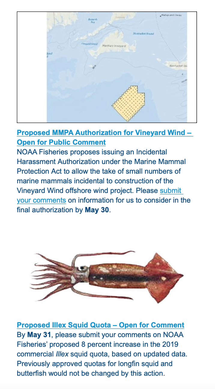 In light of the ongoing discussion about the state of our earth’s ecosystems, it is now critically important for researchers, policy-makers, and members of the local community to work together to achieve a common goal. By sharing your opinion, providing information about the local environment, and even engaging in study design, you can help ensure that the data collected by researchers becomes useful in protecting the natural resources of your concern. There are many ways to inform your understanding of a topic. For example, weekly newsletters from local and governmental agencies (as seen below, from the National Oceanic and Atmospheric Administration) will not only keep you up to date on current practices and policies, but also offer a platform for public comment on new pieces of legislation.