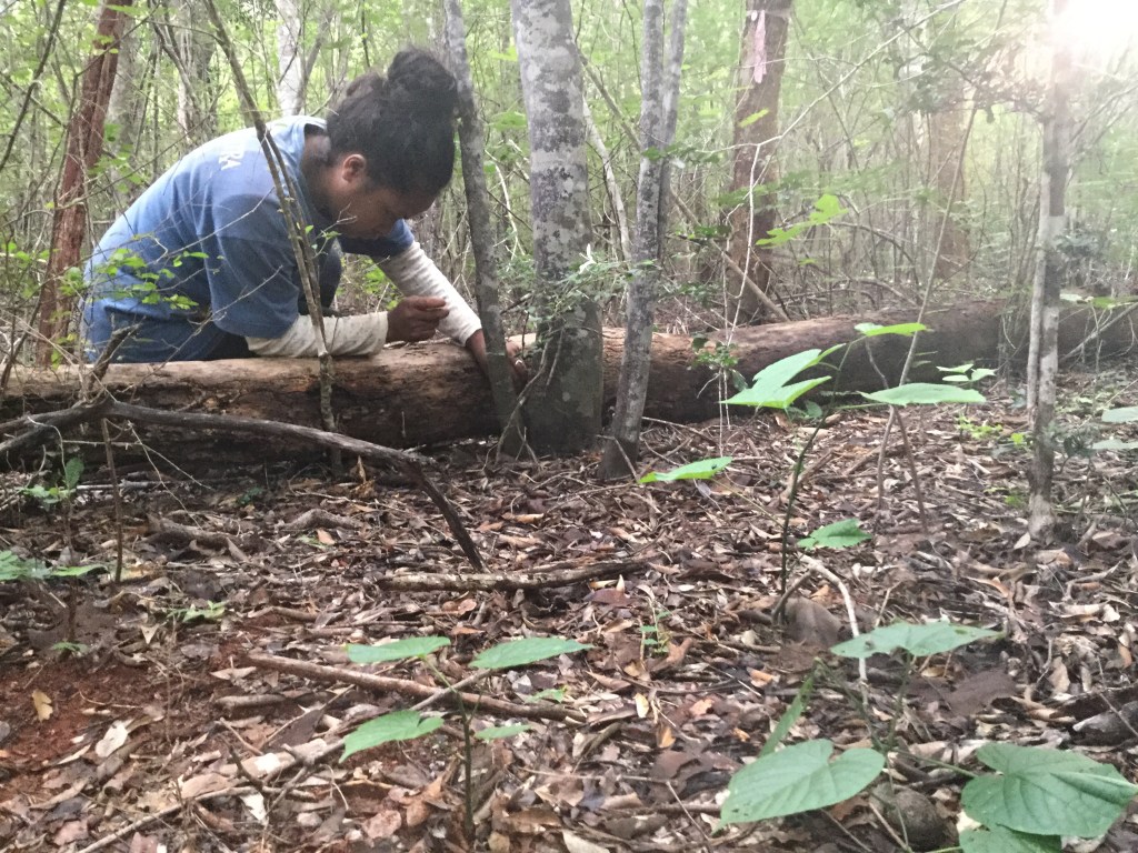 3) When you get to the sleep tree, quickly switch to red light to avoid waking up the sifaka. Attempt to find the sifaka in their sleep balls. It can get cold overnight in the dry forest, so sifaka generally sleep balled up with several group members and are often nestled in the leaves to protect themselves from the fossa – Madagascar’s largest endemic carnivore. While this is excellent fossa protection, it is also great at concealing them from researchers at 4 am trying to find them in the dark.