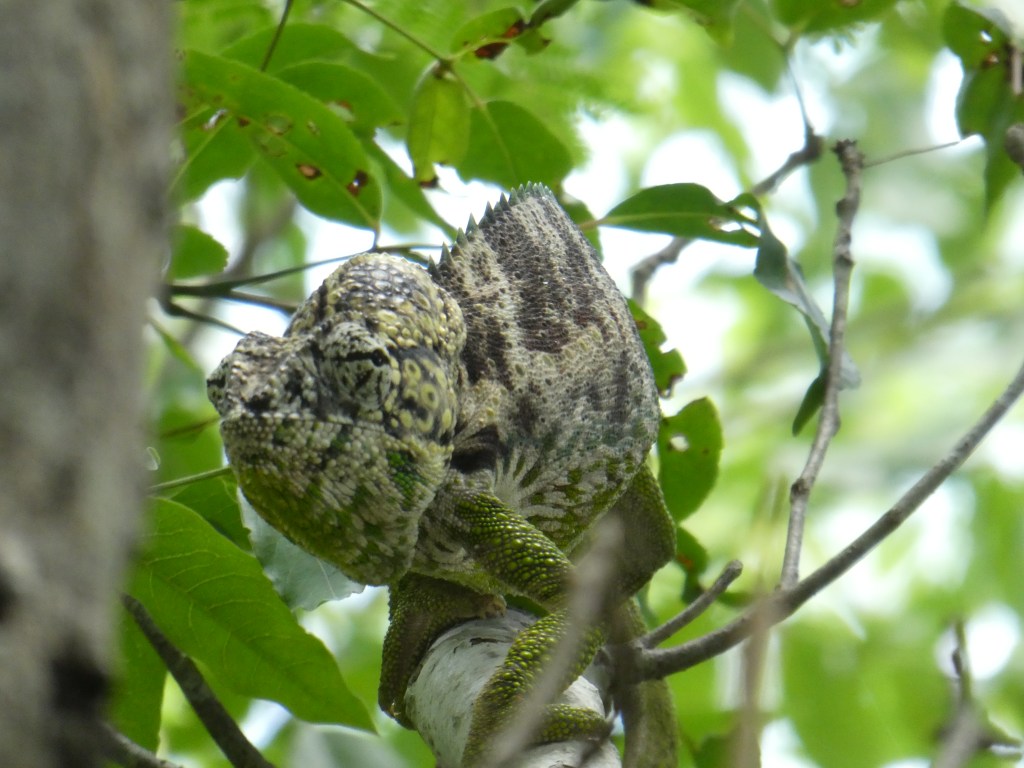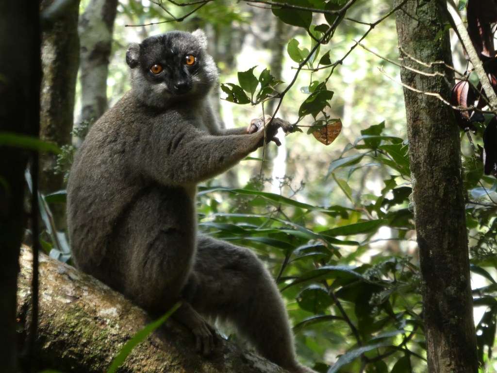 Some of Madagascar’s endemic wildlife including rainforest-living common brown lemurs (Eulemur fulvus), chameleons of all sizes and habitats (Family Chamaeleoninae, pictured is Furcifer sp.), and dry forest-living red-fronted brown lemurs (Eulemur rufifrons)