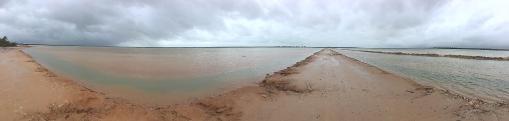 Part of the mud/salt flats in the peak of dry season (left) and roughly the same spot at the beginning of the tropical depression (right).
