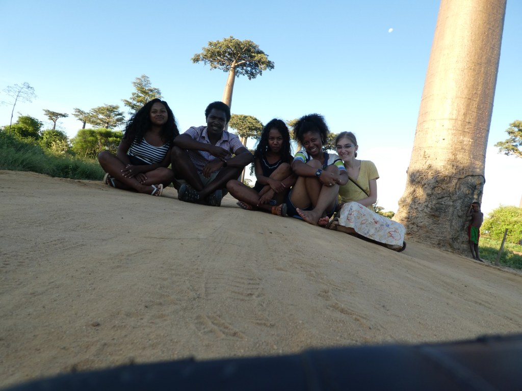 Entire Ankoatsifaka team (left: photo taken by local MNP Agent) getting ready to leave camp for the season. In Morondava, graduate student team in charge of early morning urine collection celebrates sleeping in til 7 am with visiting the Avenue of Baobabs.