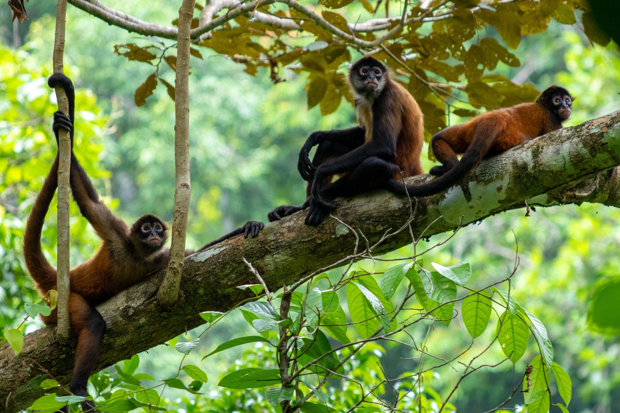 Black-handed spider monkeys (Ateles geoffroyi) don’t have thumbs, but what they do have is the most mobile and dextrous of all primate tails! The underside of the tail is covered with ridges that help them grip branches as they swing.