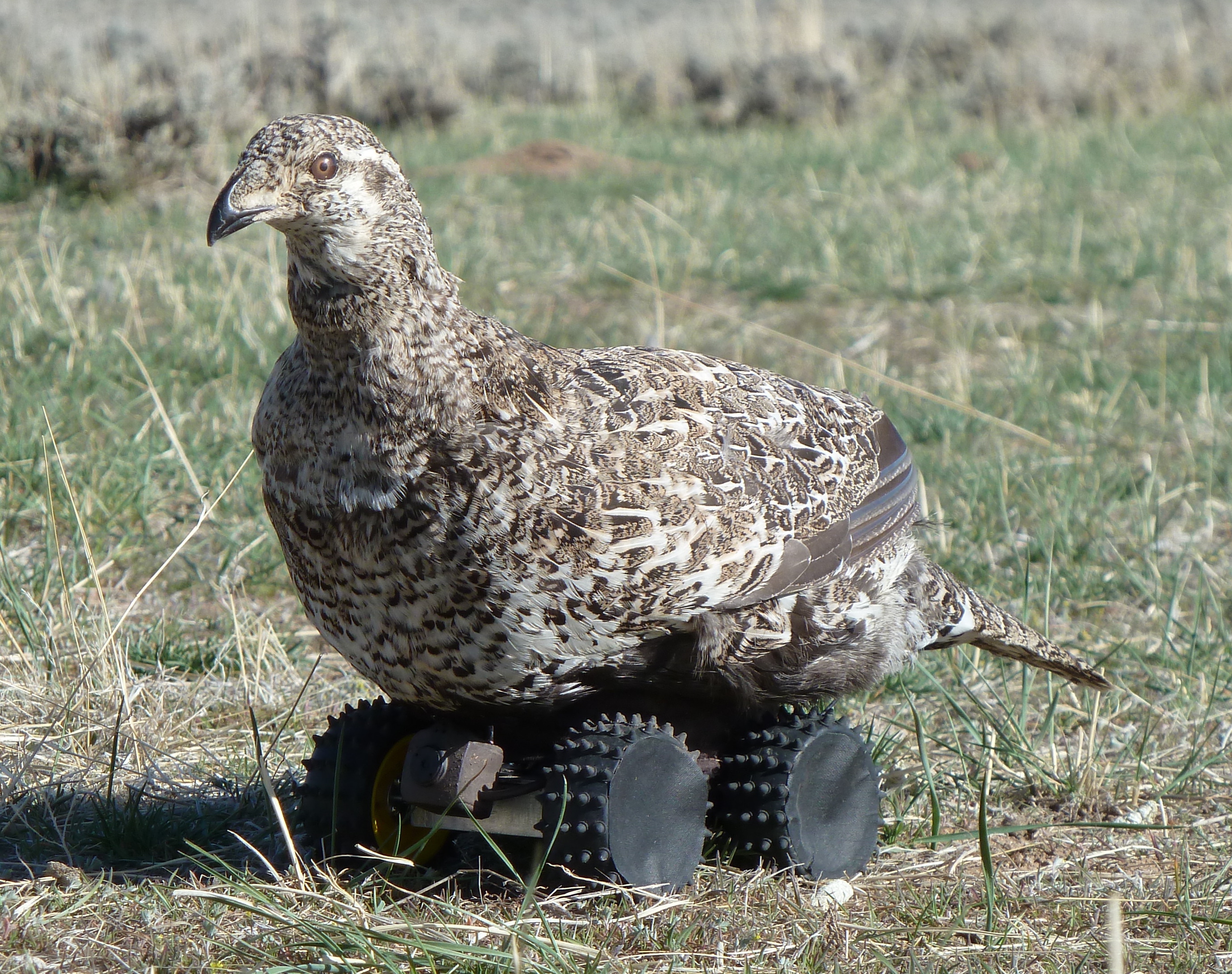 The robotic female sage-grouse, shown above, was used to experimentally manipulate sage-grouse males’ courtship behavior via remote control.
