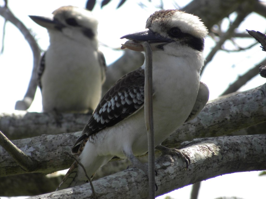 The kookaburra’s most striking behavior is its eponymous cackling call, which has fascinated humans for centuries. In fact, the indigenous Australian Bidjigal clan have a story about the serious and stern kookaburra. As the story goes, no bird felt the ire of kookaburra as much as cuckoo bird, who laid her eggs in the nests of other birds so she could shirk her parental responsibilities. One day cuckoo bird was caught in the act of laying her eggs in the nest of eagle. Kookaburra watched eagle murder and eat cuckoo for this attempted trickery, and she burst out in laughter for the first time in her life. To this day the kookaburra continues to jovially laugh at the misfortunes and tragedy of others [1].