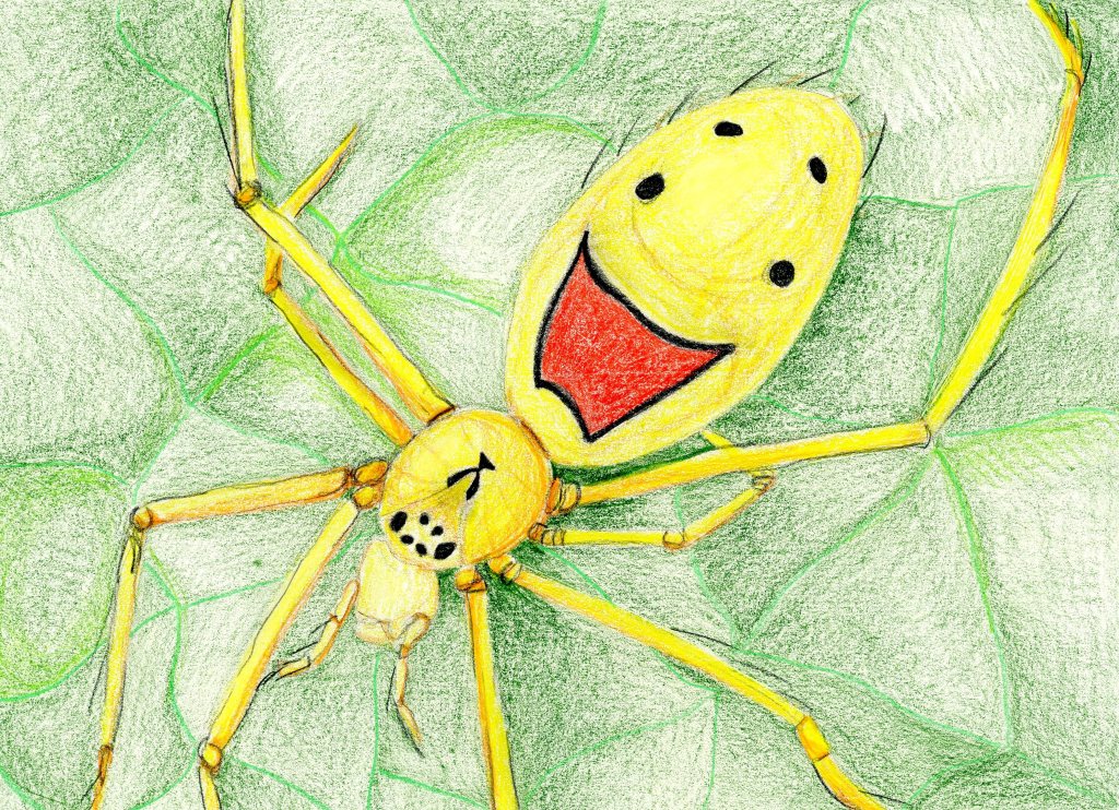 polymorphic, showing individual variation in the pattern and color of their abdomen, from plain yellow to patterns resembling smiling and frowning faces. Interestingly, female happy face