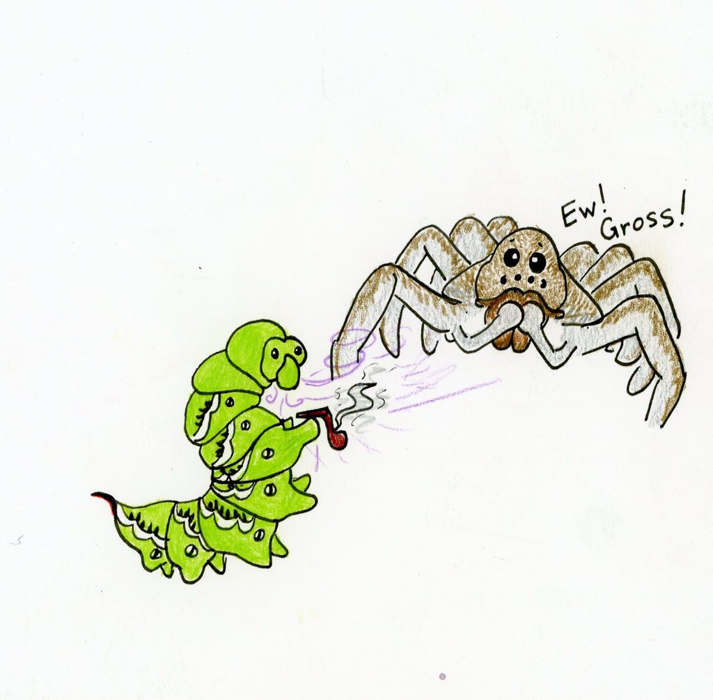 Caterpillars of the tobacco hornworm (Manduca sexta), as the name suggests, specialize on eating nicotine containing plants. Normally, nicotine is an effective plant defense against herbivores as it poisons various animals by interrupting neural mechanisms associated with muscle movement. Tobacco hornworms, however, can handle doses of nicotine that are lethal to herbivores that do not specialize on eating plants with this defense. There is also evidence that they co-opt the nicotine poison for their own defense against predators but it was unclear how this was done since they do not store nicotine anywhere in their body. In a study looking at interactions with a predatory wolf spider (Camptocosa parallela), it was shown that these larvae release the nicotine they eat through their spiracle, a respiratory opening that allows gases to diffuse in and out of their tracheal system, which stops wolf spiders from eating them after they’ve been captured. In other words, tobacco hornworms use their bad tobacco-ey breath to ward off certain predators!