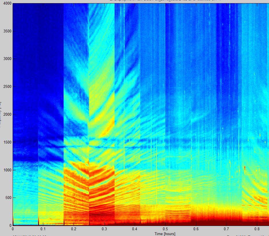 In my current positions, I’m focusing on two extremely endangered cetacean populations, the Cook Inlet beluga population in Alaska, and the southern resident killer whale population in the Pacific Northwest. These two populations live in very different locations, but are both facing very similar threats. Both populations are listed under the Marine Mammal Protection Act and are listed as “Species in the Spotlight” under NOAA Fisheries. Both populations have been listed as endangered for many years, yet continue to decline. As scientists, we believe the three main reasons for decline to be: exposure to high levels of anthropogenic (human-induced) noise [4] [5], high levels of contaminants found in their ecosystem as well as in their tissues [6], and a decline in prey availability (how much food is available in their environment). My focus has narrowed in on the anthropogenic noise issue due to my background in bio-acoustics and my fascination with cetacean communication. Since we know that both populations rely heavily on acoustics and communication to find other group members and locate prey, understanding how increasing levels of anthropogenic noise (i.e. cargo ships, whale watching vessels, ferries, military sonar and oil and gas exploration to name a few) may be affecting their ability to survive. This is where the eavesdropping portion of my job comes into play. Using our sea floor mounted hydrophones and acoustic tags, we analyze the many sound files to understand vocal communication, location of calls, and foraging success within their critical habitat and surrounding areas. We can also measure the levels and occurrence of anthropogenic noise in their habitats and how that is affecting their ability to forage and communicate with other group members.