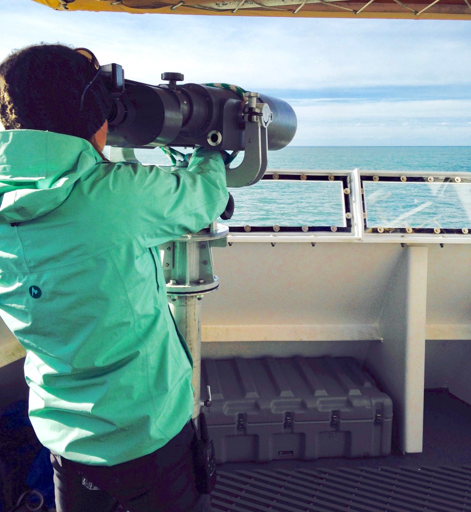 The third question I often get asked is “how did you even know this was even a job possibility and how did you get into this field?” Since I was young, I knew I wanted to study marine mammals and was fascinated with their behavior and their communication in particular. After many internships and volunteer opportunities in my undergraduate studies, I became a marine mammal trainer and research technician focusing on bio-acoustics. Bio-acoustics is an interdisciplinary field that combines the study of sound and biology, primarily relating to the sounds produced by living organisms relating to communication. The organisms that I have worked with include: California sea lions (Zalophus californianus), harbor seals (Phoca vitulina), southern sea otters (Enhydra lutris), northern elephant seals (Mirounga angustirostris), bottlenose dolphins (Tursiops truncatus) and killer whales (Orcinus orca). After about 8 years of using positive reinforcement training as a tool to conduct collaborative research with these charismatic animals, I made the tough decision to transition from working with marine mammals in this cooperative setting, to studying wild marine mammal populations, particularly endangered cetacean species.