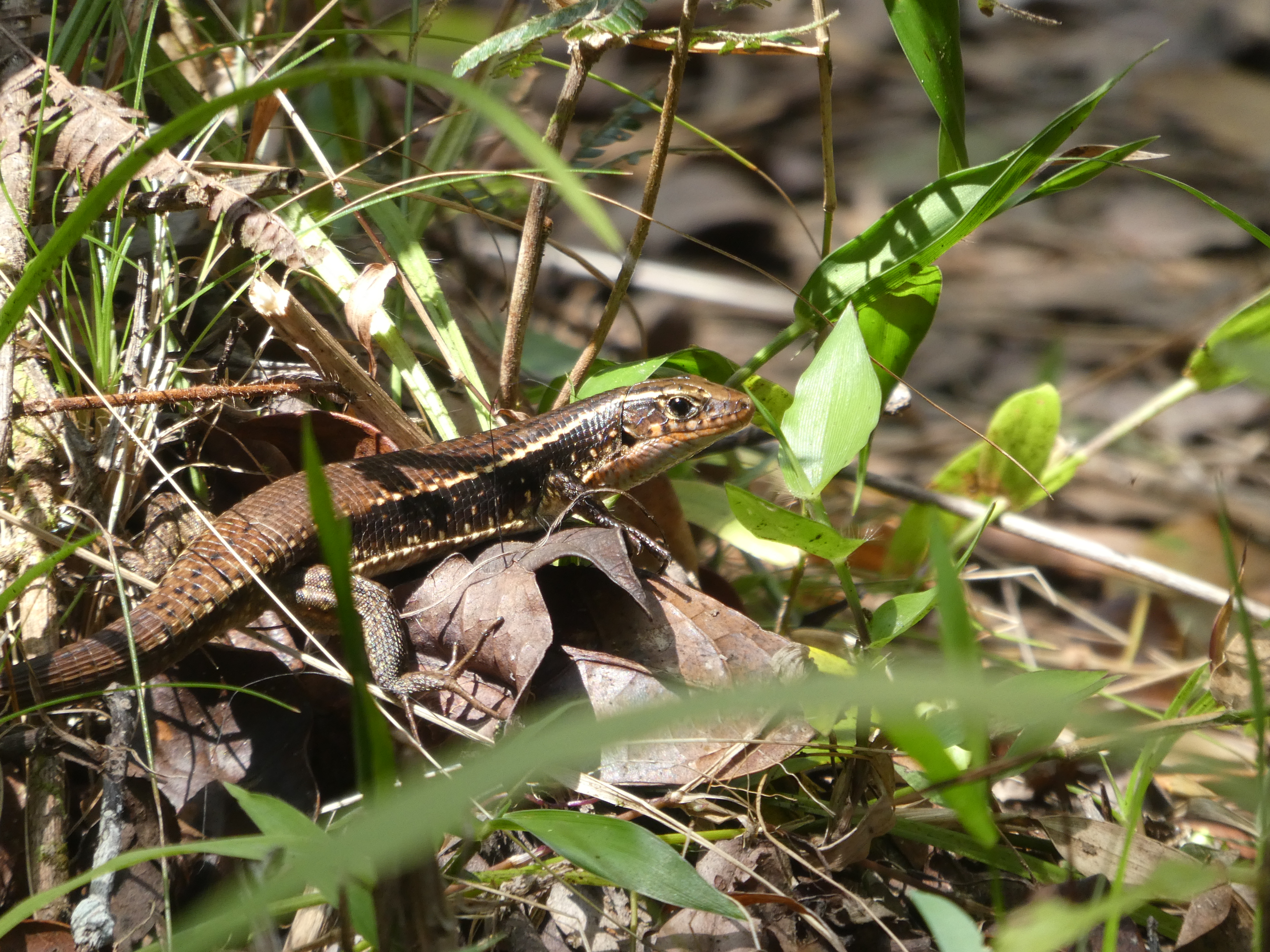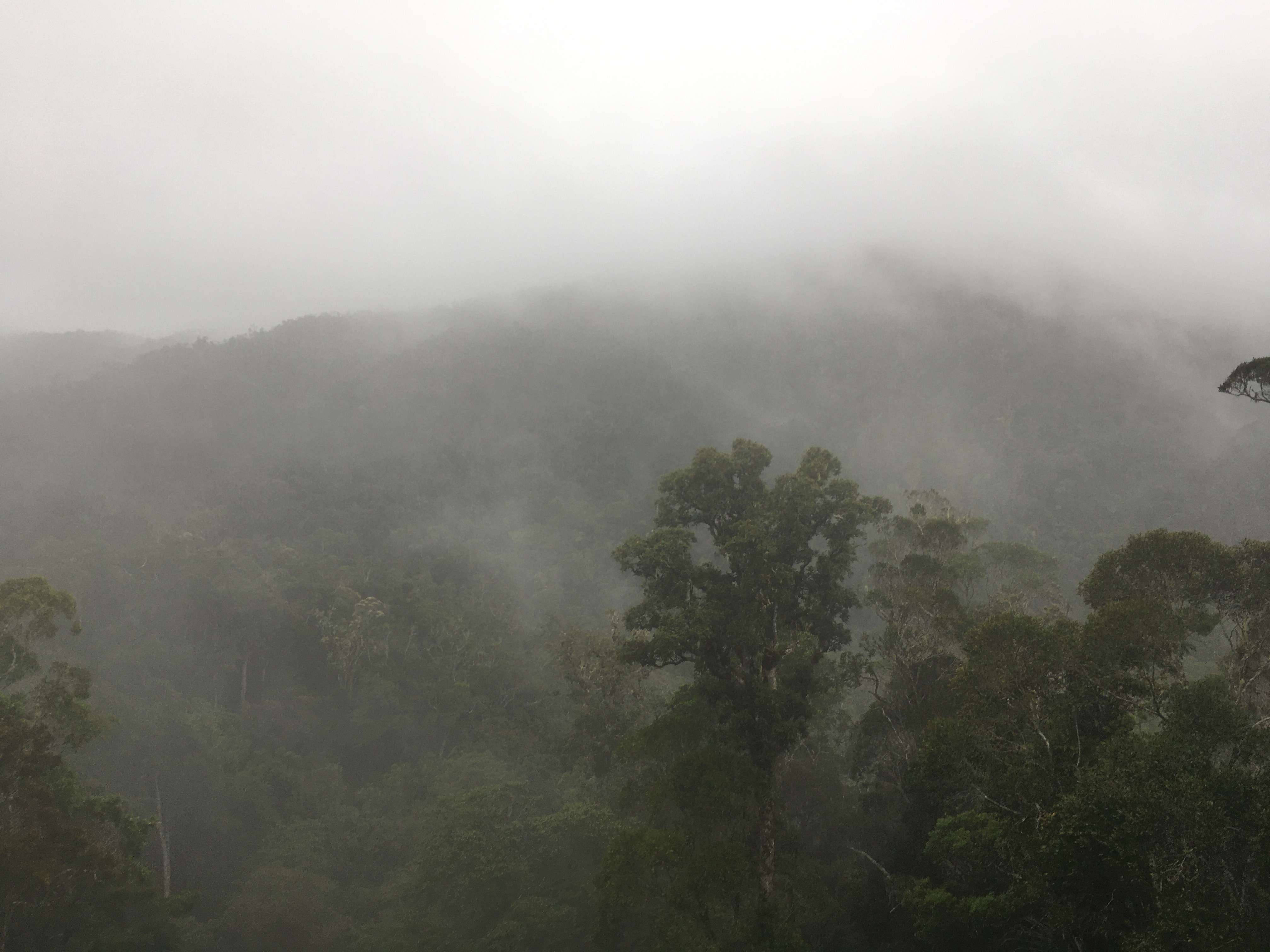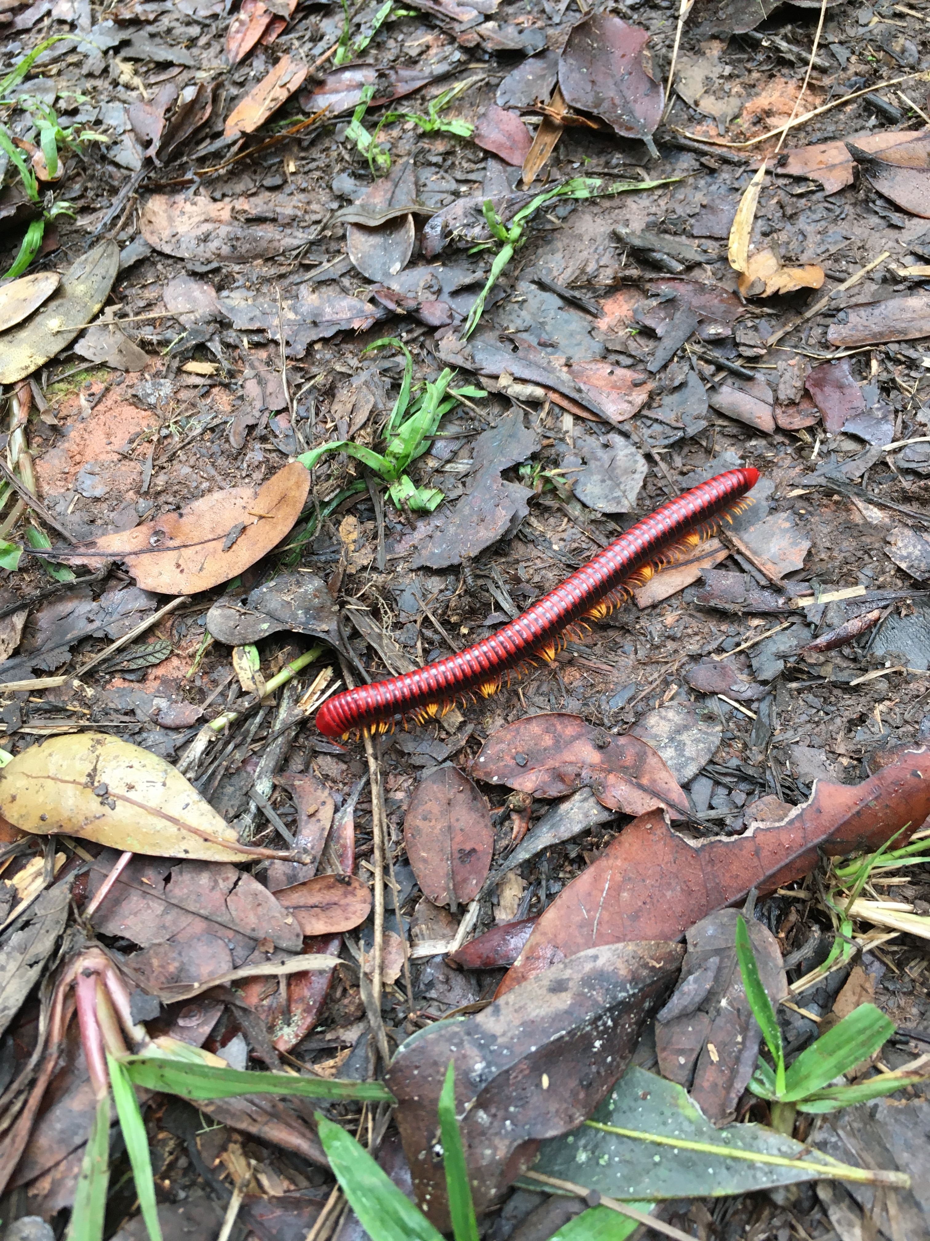 December was a month I had feared: the beginning of rainy season. I’d completed many “little” rainy seasons before in Maromizaha, but this was my first “big” rainy season. Much to our surprise, we had a few afternoon thunderstorms, but no cyclones or major weeks of nonstop rain common to the little rainy season. I wasn’t arguing though, and neither were the reptiles of Maromizaha [Upper and center right], as they began their mating seasons. Our trails remained clear, and the bright red, 15-20 cm millipedes [Upper middle] and brown lemurs [Upper left] took advantage. While these pictures may not look like it, rainy season found us in January. We had a beautiful sunny week amid the rain, with lots of play [Center left], naps in the shade [Center left], and babies that were finally more or less independent from their mothers [Center right]. Our tree marking [Lower right; Photo credit: Grace Davis] got much more challenging in the rain when we learned that sharpies do not write on wet fabric. With all this rain, the fungi [Lower left] came out in full force, showering the forest floor in a confetti of orange, white, blue, red, and brown fruiting bodies.