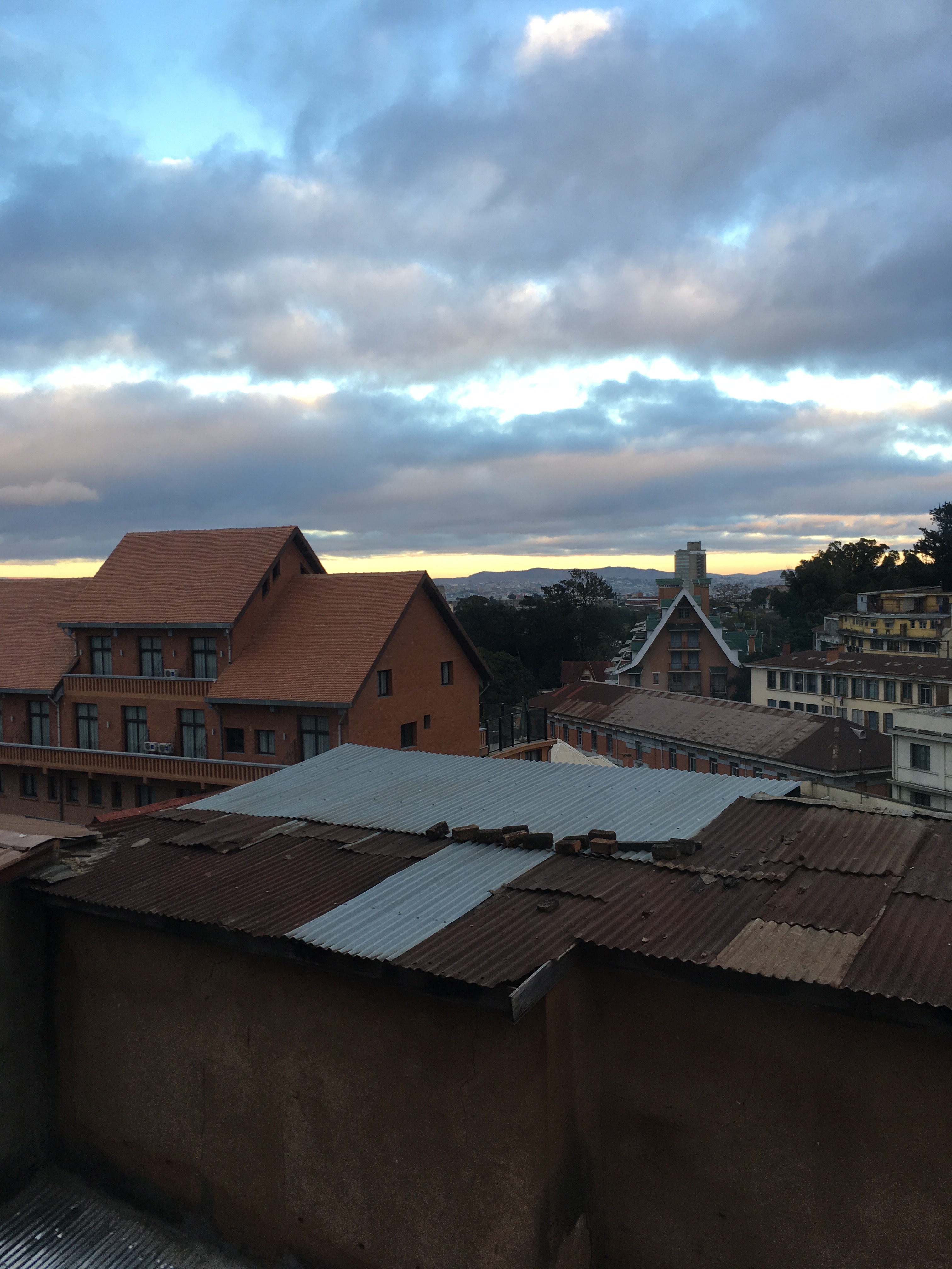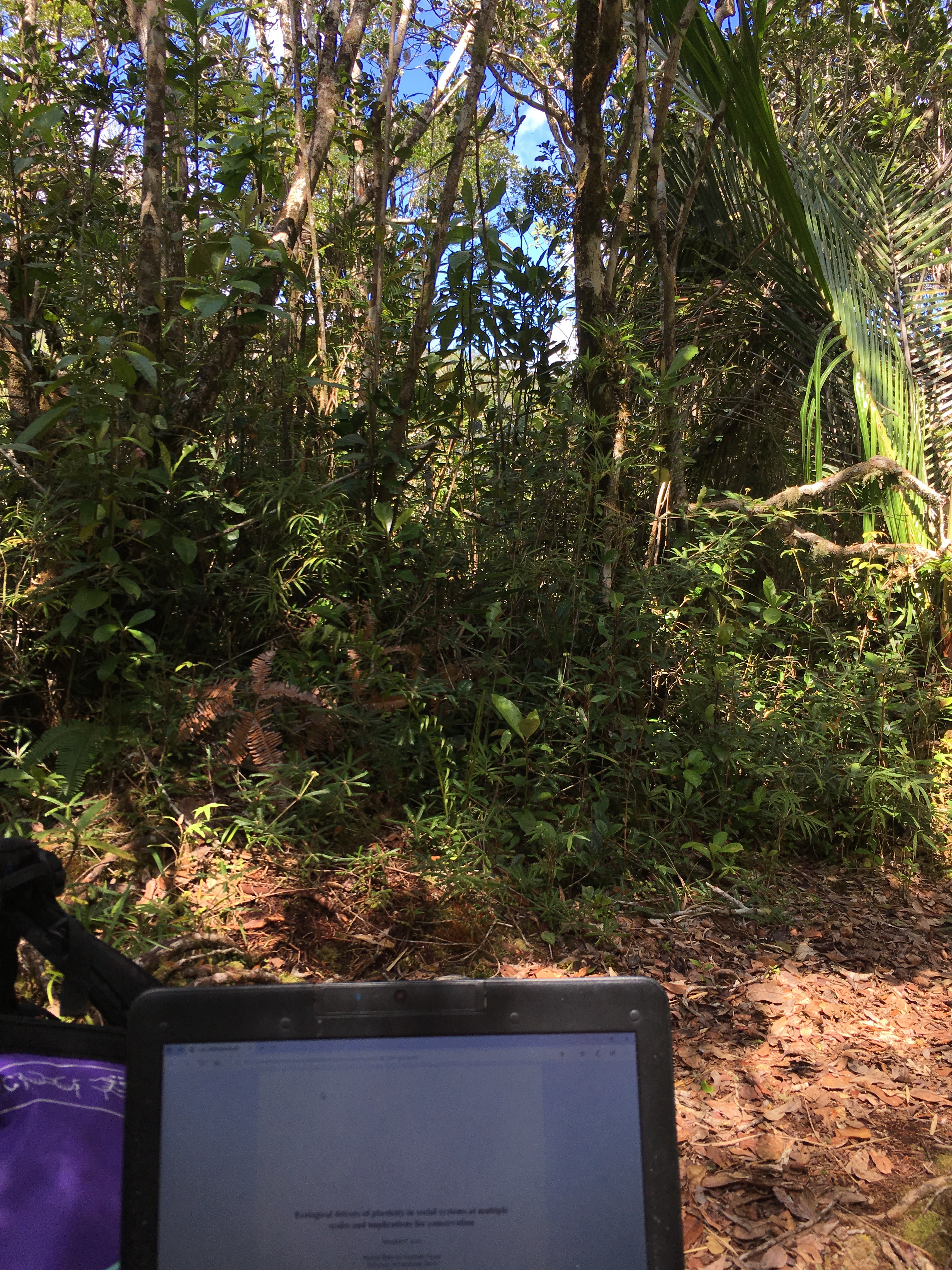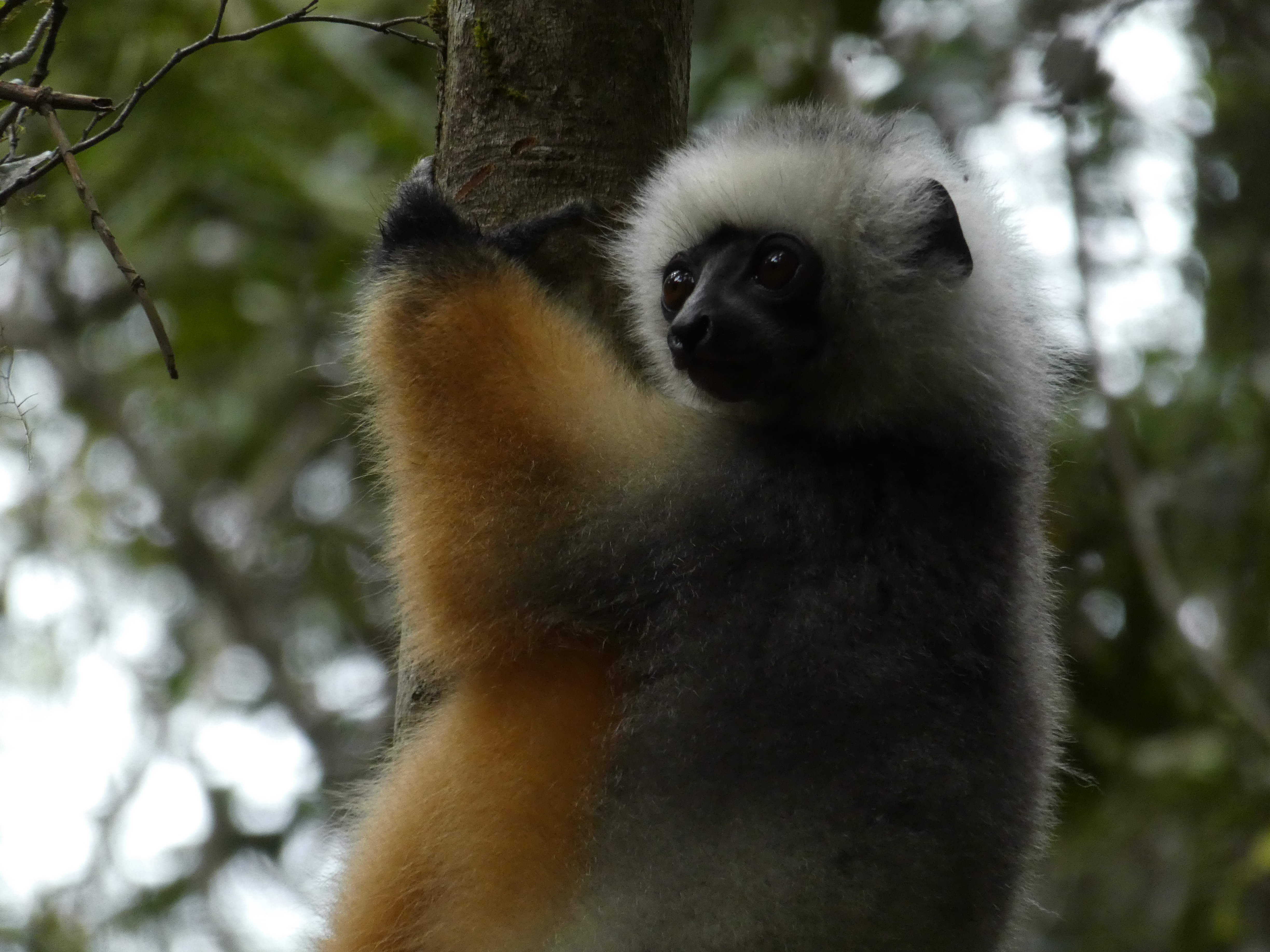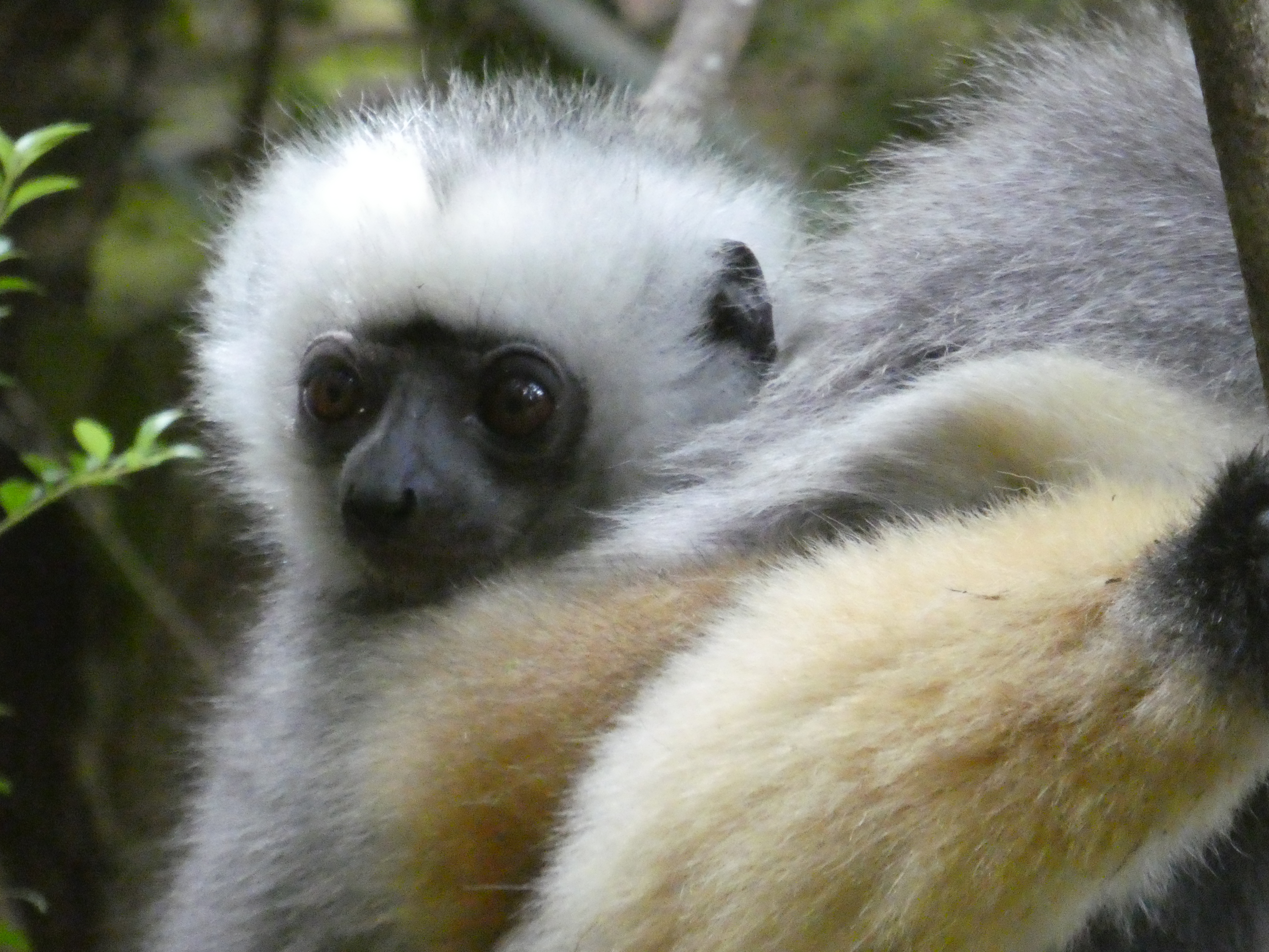 Upon arrival in Madagascar, I was able to attend the 56th annual congress of the Association for Tropical Biology and Conservation, held in Antananarivo, Madagascar [Upper right]. Along side my colleagues, I presented our preliminary findings on diademed and Verreaux’s sifaka (Propithecus verreauxi) social behavior [Upper left; Photo Credit: Rose Marie Randrianarison]. Upon reaching Maromizaha, our field site, my team was greeted by an early start to dry season. Black and white ruffed lemurs (Varecia variegata editorum) and sifaka feasted on the ripening fruits [Center left and lower right], I could take my computer work outside without fear of a rainstorm [Center right], nap time was accompanied by brilliant blue skies [Center left], and we began to watch the new sifaka babies get their characteristic grey and orange fur [Lower right]. All this dryness, well, had to be interrupted by the occasional rainy day just to remind ourselves that we do work in a rainforest. As rotra mena fruit became available [Lower left], we spent day after day at the same trees as both the sifaka and brown lemurs finished off the tiny magenta fruits.