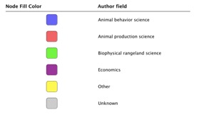 In order to investigate the paucity of integration of information between behaviorists, rangeland scientists, and economists, the review authors created a co-authorship network of authors contributing to this topic. Co-authors were identified by a systematic search of key literature. This resulted in a sparse network of authorship and identified a notable disconnect between the fields of animal behavior, animal production, rangeland science, and economics. This disconnect was especially evident between animal behavior authors and authors from all other fields. The co-authorship network provides a potential explanation for the lack of integration of strategies that is seen in current literature and encourages authors to work across disciplines to solve this urgent and relevant grazing distribution problem.
