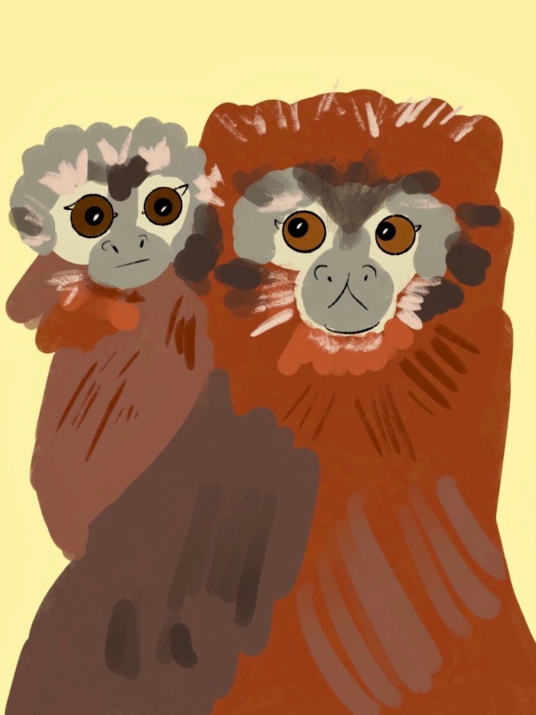 Titi monkeys (Callicebus cupreus) are studied not only for their monogamy, but also because fathers are actually the primary caretakers of the babies! Mothers will provide nourishment through nursing, but most of the time you’ll see the baby titi monkey clinging to their father for the first few months of their life. However, for families with multiple offspring, sometimes siblings will take turns to carry the newest addition.