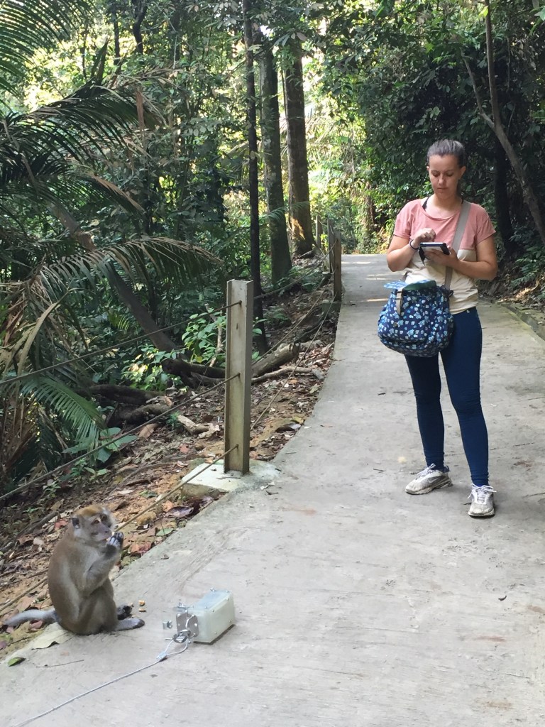 Starting in early March, I was supposed to start an entirely new project. The goal was to begin following a “control” group of rural macaques, which I planned to compare to the groups of urban macaques our team has been following in Malaysia for years [7, 8]. However, since these new groups have had little contact with humans, before I could study them I needed to habituate them first. This is a process where scientists follow animals until they become accustomed to their presence, after which they can begin collecting data. The groups I selected to habituate live in a palm oil plantation on the edge of the Segari Melintang Forest Reserve, Malaysia (Check out a map here). Habituating two wild groups of long tailed macaques, however, would be far from easy. I planned to hire two field assistants that were up for the task: traipsing around the forest from early morning until dusk searching for and maintaining contact with selected groups of monkeys. Although I didn’t expect that this process would take very long– I had visited some months before and observed their minor reluctant attitude towards humans – I allocated four months for the habituation process. However, I didn’t get very far once the news of the world-wide spread of COVID-19 was hitting the stands in early March. Within a few weeks’ time, not only had the habituation project been cancelled, but our entire team based out of Malaysia had been evacuated home to their respective countries. Thus, my story for fieldwork actually ends before it really even gets a chance to begin. The hired assistants were supposed to habituate these groups in order to enable me to subsequently test them with foraging extraction experiments. By testing the problem-solving performance of the rural groups, I would have then been able to compare them to the urban groups I have already tested (back in 2018) to explore the effects of urbanization on cognitive performance.
