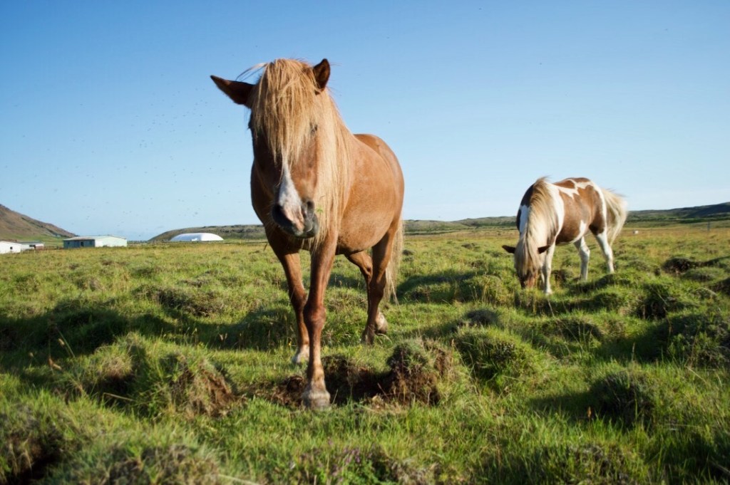 Icelandic horses (Equus ferus caballus) are the only horse breed in the world that can perform five different gaits. Most horses can walk, trot, and canter, but Icelandic horses can also perform a flying pace and a tölt – these gaits, in which only one hoof touches the ground at a time, are useful given the often-uneven terrain in Iceland (pictured here in Southern Iceland) as they allow for a smooth ride. Interestingly enough, a “flying pace” is also how I would classify my own movements as I tripped my way through this bumpy terrain while hiking in Iceland…