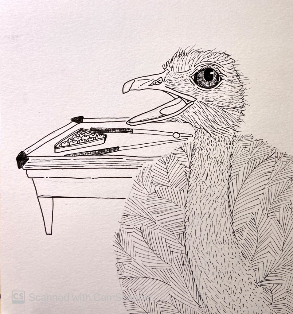 What big eyes you have! Ostriches have the biggest eyes of any land vertebrates– roughly the size of a billiard ball.