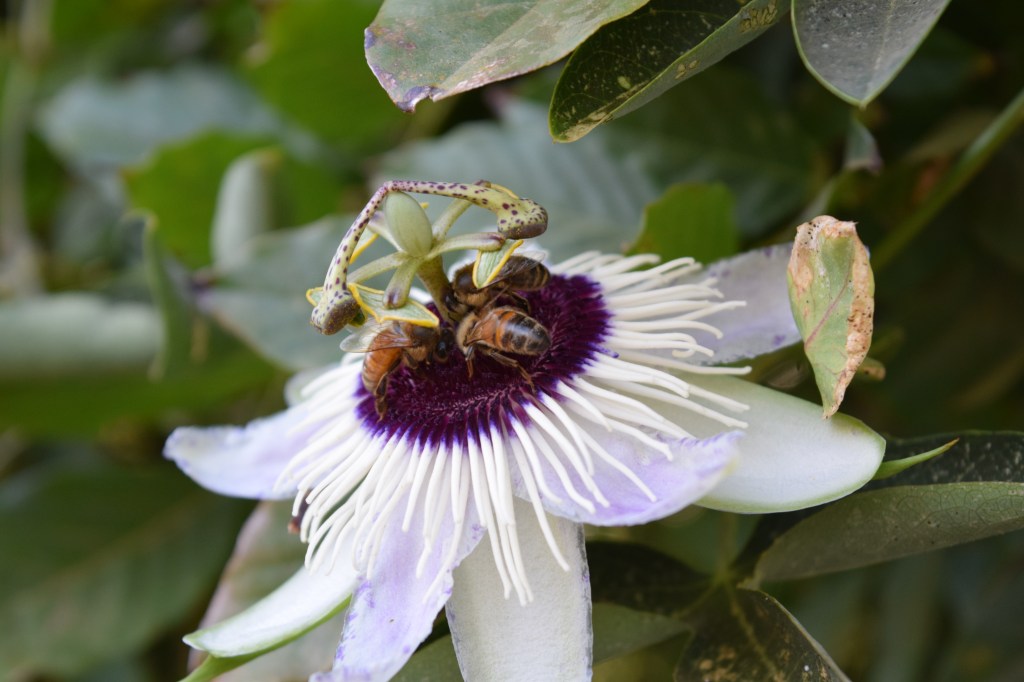 Honey bees (Apis mellifera) need lots of nectar to make stored honey for the winter. When one bee finds a good patch of flowers she will tell her colony mates where the food is through a waggle dance, which communicates both the direction and distance to the food. It’s similar to how seeing one ant at a picnic soon means you’ll see dozens of them; however, honey bees have a much more complex system to deliver this information.