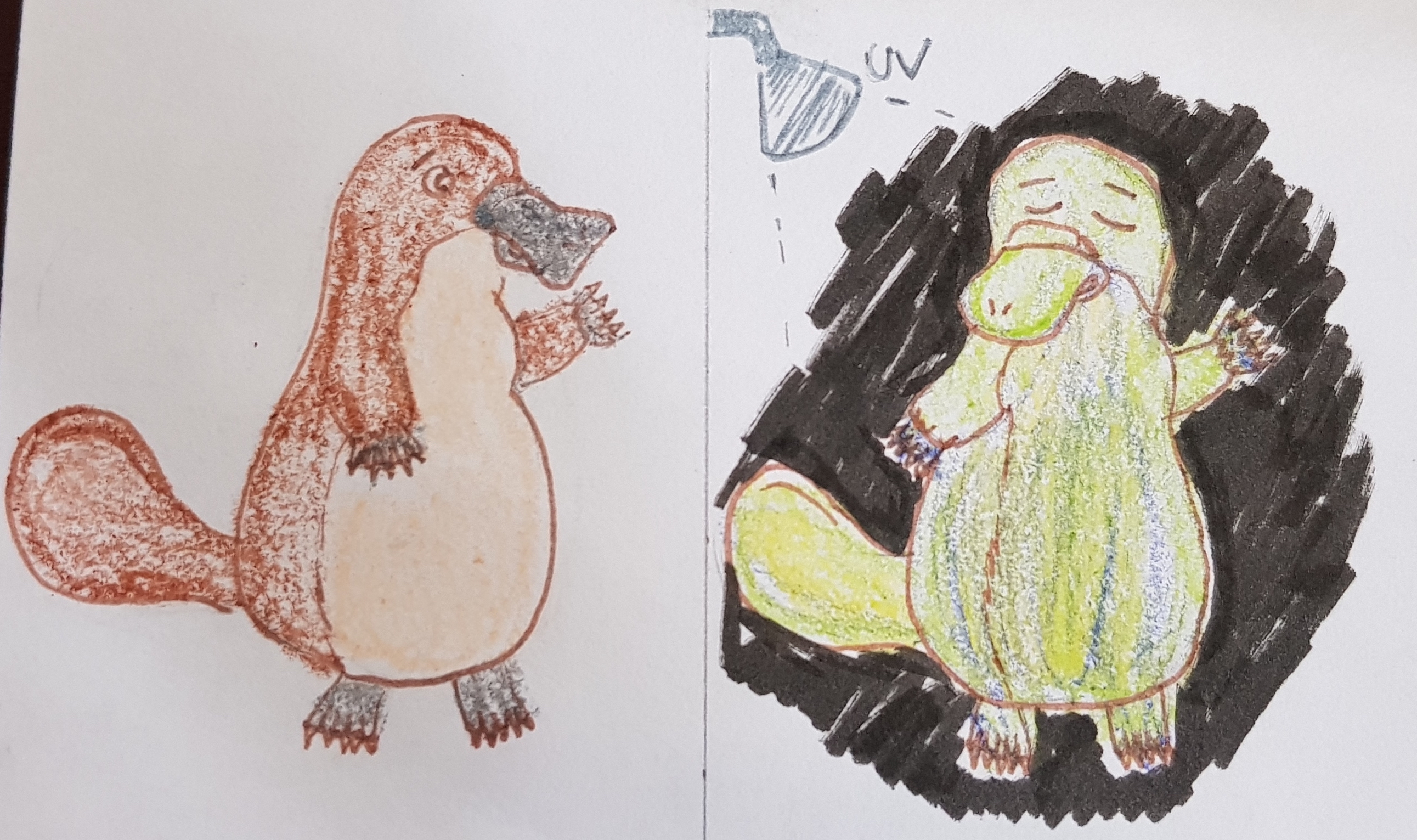 Source: Anich, P.S., Anthony, S., Carlson, M., Gunnelson, A., Kohler, A.M., Martin, J.G. and Olson, E.R., 2020. Biofluorescence in the platypus (Ornithorhynchus anatinus). Mammalia, 1(ahead-of-print).