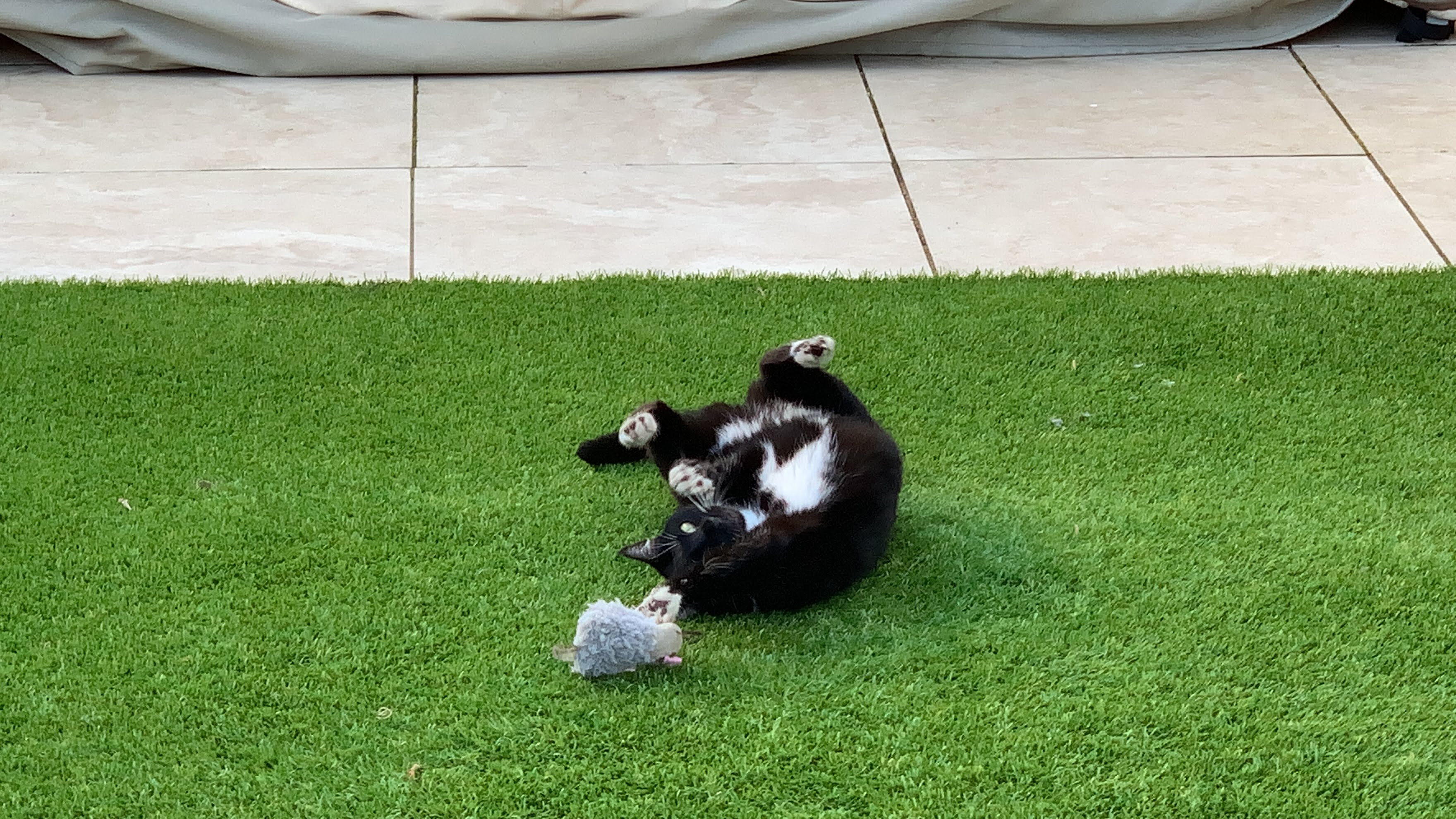 Despite always being alert of their surroundings and having hunting instincts, feral cats are cats after all. Just like housed cats, Luna and Twinkle actually love playing with cat toys, such as stuffed mice and fish. When showing affection to their trusted human, they roll over and expose their bellies. A cat showing their underside of their bodies means that they trust you because they dislike their bellies from being touched, and they trust you enough to know that you will not hurt them. Luna, who is more accepting of petting than Twinkle, frequently purrs when pet, showing signs of happiness. Determining the mood of a cat relies mostly on their body behavior. The most common behavior noticed in many cats is the famous “question mark tail,” meaning confidence and playfulness. If the tail is wrapped around their body, it means that they are nervous and that you should not approach them. If the tail is straight down and extended, it means that the cat is feeling aggressive [3]. These cues are the same between feral and housed cats.