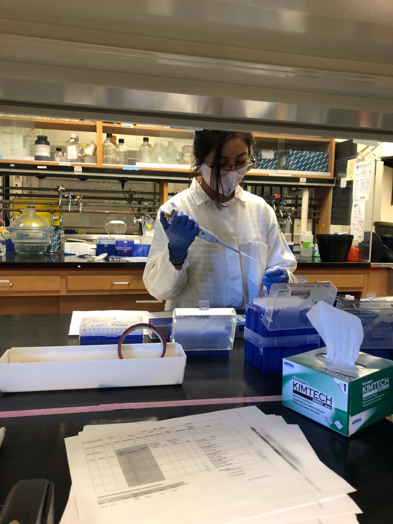 Alison Ramirez hard at work running a molecular genetics assay in the lab. (Source: Victoria Farrar)