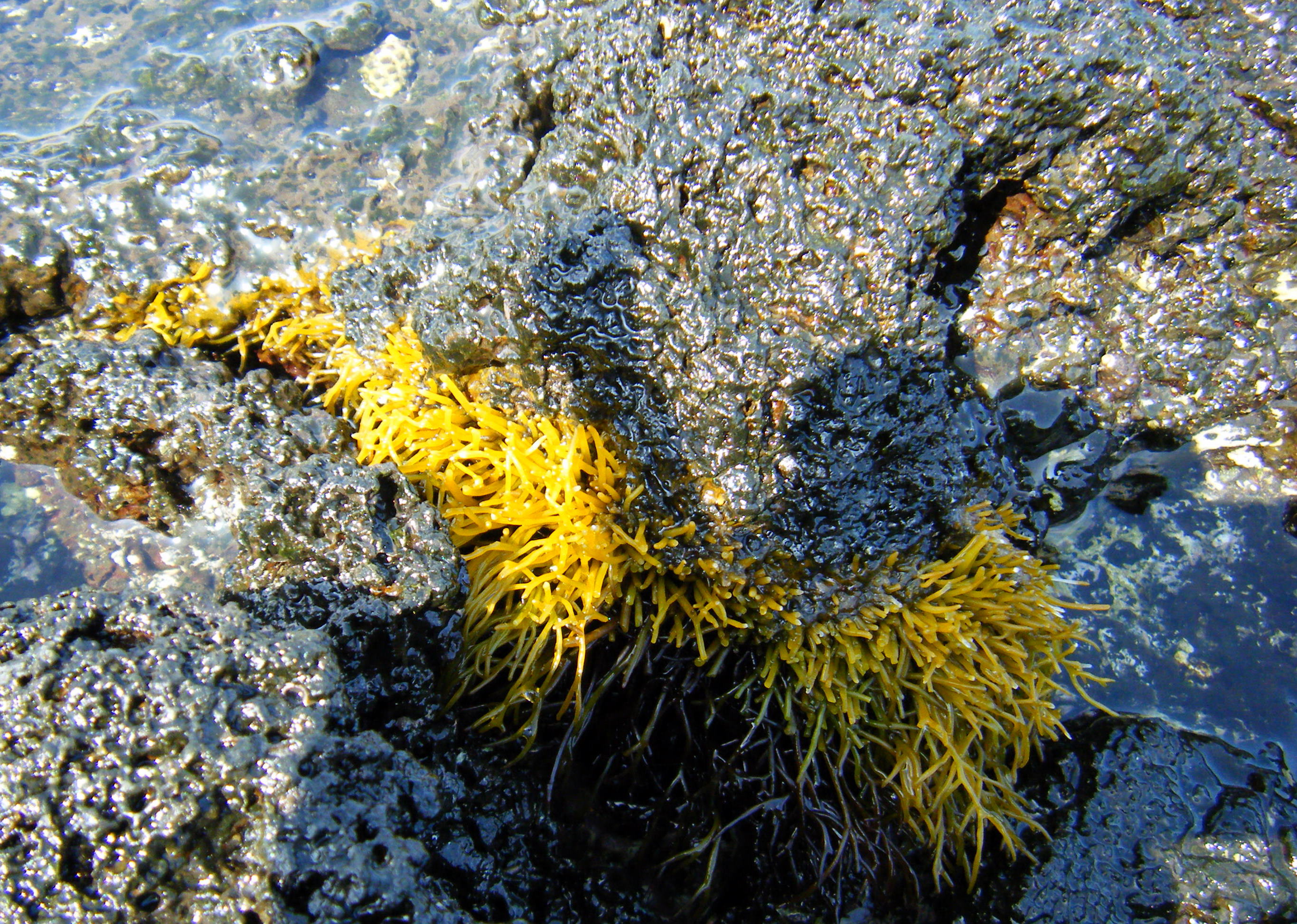 Limu wฤwaโiole (Codium edule) has a dark green, spongy surface and is the best when pounded with fresh octopus, but requires intense cleaning since it grows as a mat across intertidal and subtidal reef rubble.