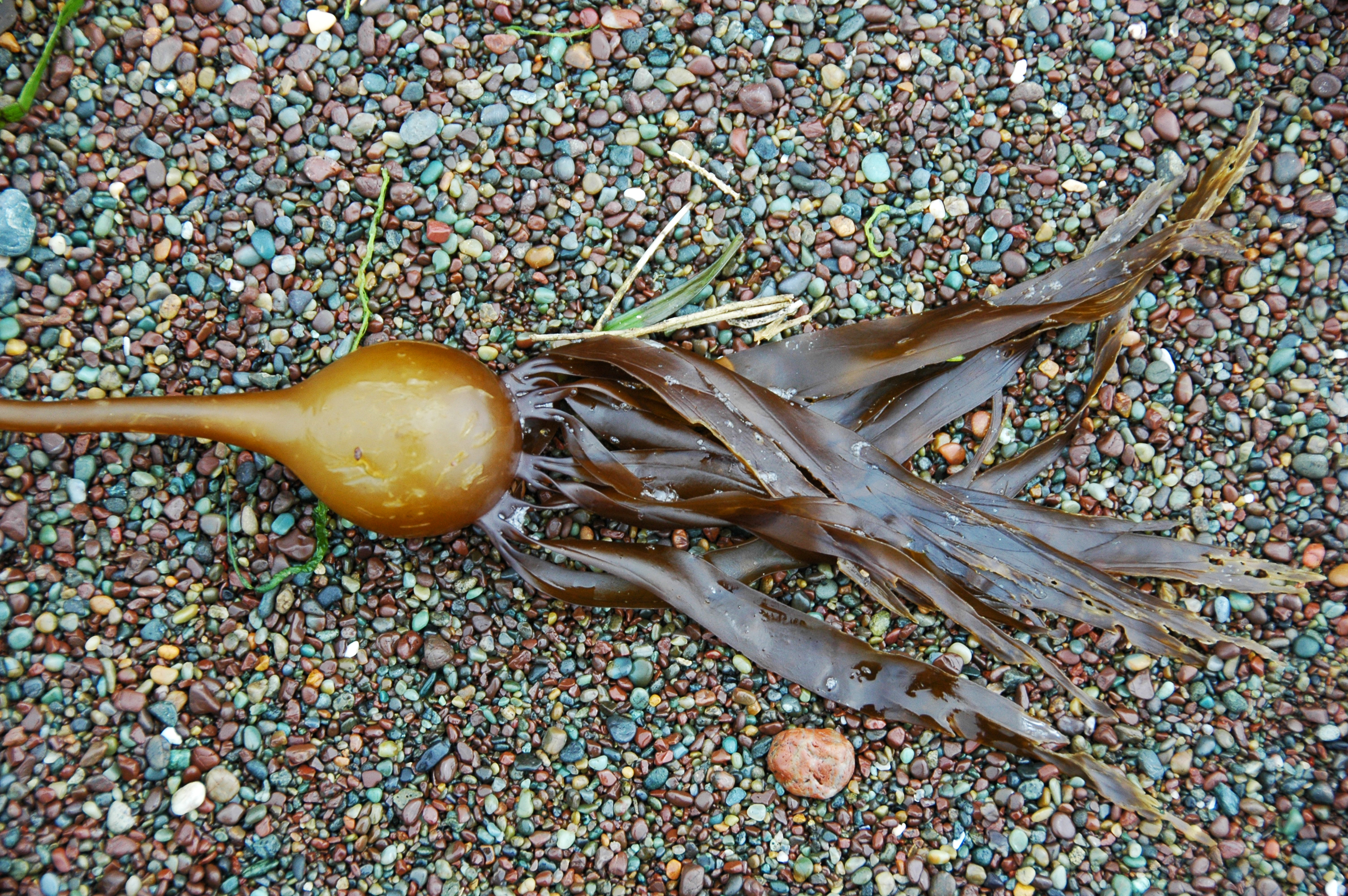 Bull kelp found in California (left, Source) or ogo algae in Hawaii (right, Source) is the key ingredient for seaweed cake.