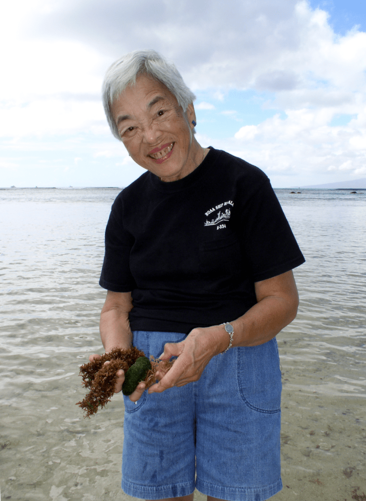 Her fierce dedication to her scientific field was matched by her deep appreciation for her Hawaiian ancestors and their culture. Dr. Aiona Abbott found herself exploring ethnobotany, the scientific study of relationships between plants and humans. She realized that Native Hawaiians were keen naturalists, understanding marine plants intimately yet not receiving acknowledgement from the Western scientific community. Thus, she began interviewing kลซpuna (Hawaiian for elders) to document their rich traditional ecological knowledge. In a later interview Dr. Aiona Abbott explained that this documentation is necessary โso that Hawaiians are not put in second- or third-class status of Native people who donโt know anything. Hawaiian culture is unbelievably sophisticated.โ Documenting oral histories helped her unearth historical uses for native plants and how they can be used in daily life, as well as traditional Hawaiian methods for the cultivation and harvest of limu. The results of her work culminated into two popular books, Limu: An Ethnobotanical Study of Some Hawaiian Seaweeds in 1974 and Laโau Hawaiโi: Traditional Hawaiian Uses of Plants in 1992 [2-3].