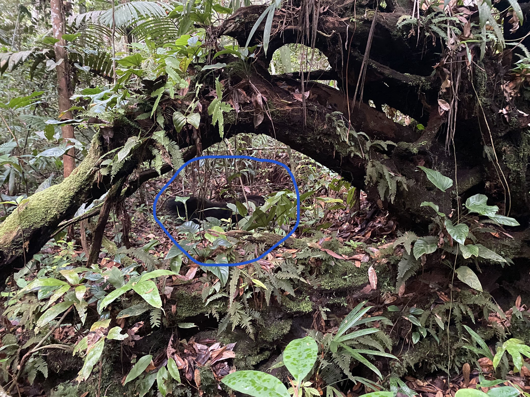 In September of 2021, I happened to be at Estación Biológica Quebrada Blanco in Loreto, Peru for field work studying coppery titi monkeys. On my first day at the field station, I was lucky enough to witness a giant anteater trundling through the forest. I only got a blurry photo of its tail, but this moment was extremely exciting and unique; though researchers have worked at this field site for 35 years, they had never seen a giant anteater until this observation.