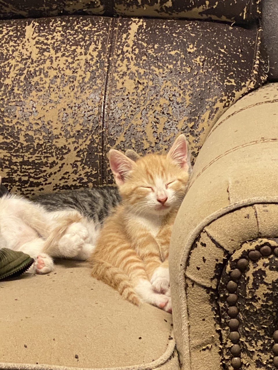 Many dairy farms have feral or barn cats that live on the property. They help to catch mice, in between taking cute naps like this!