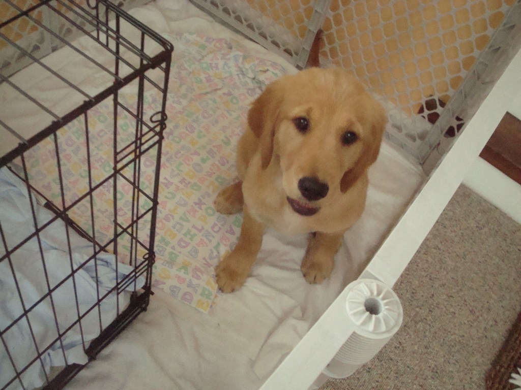 Before bringing our pups home, it is wise to make sure our dogs have a place to call their own when first introduced to our homes, or a “safe space.” Dogs can be very social and lovable, especially breeds like Golden Retrievers, but that doesn’t mean they do not desire a place to call their own when they are tired, want to nap, or just have some downtime. It is important, however, that their “safe space” only be associated with positive memories, and never a place to go to as punishment. Getting a crate appropriate for your puppy’s size is seen as a good thing by many dog trainers and behaviorists, especially when that crate is associated with positive things [11]. Eventually, when you must leave your puppy home, that can be their go to space, so it is important it is large enough for your puppy now and can accommodate its size as an adult.