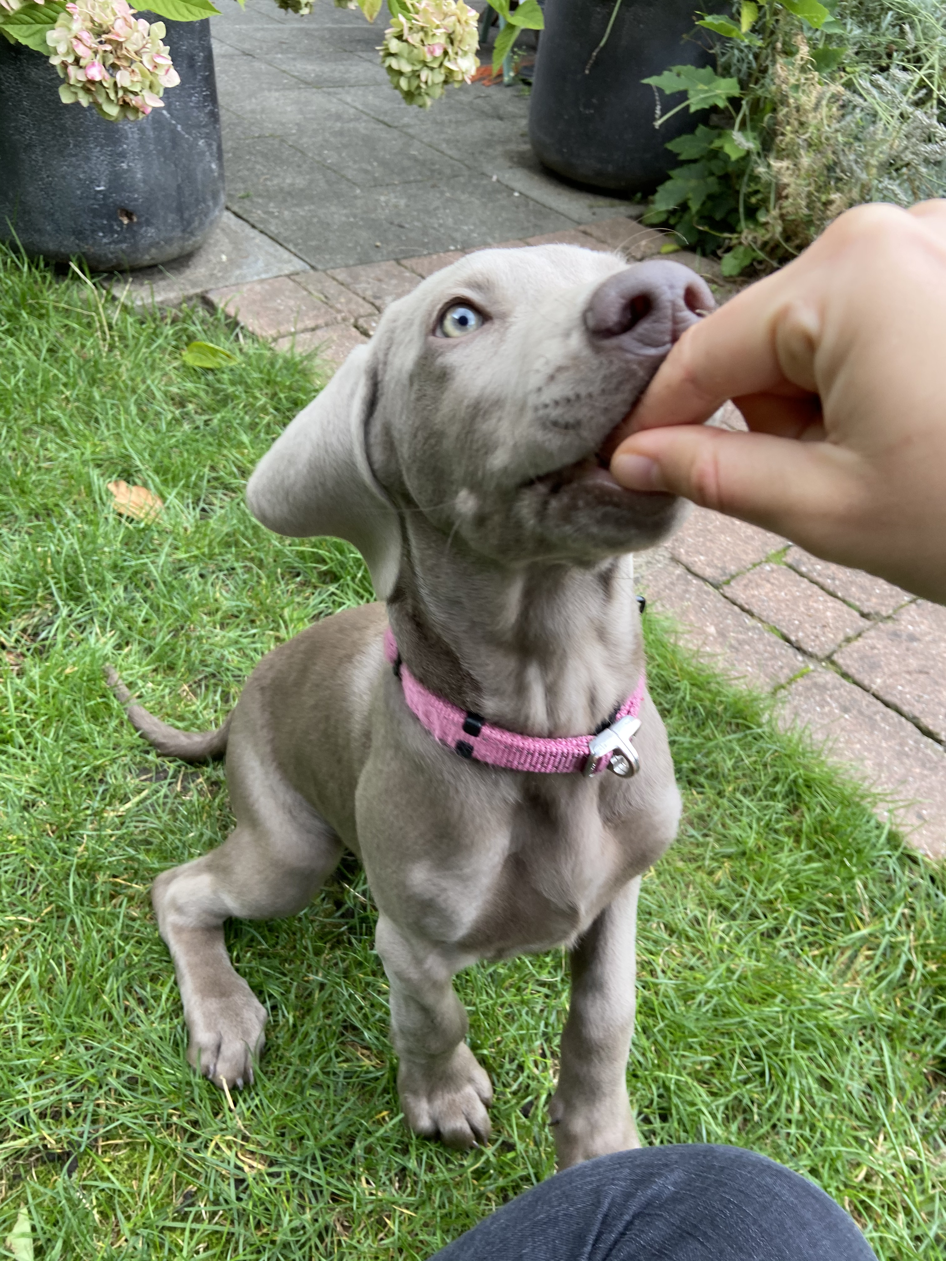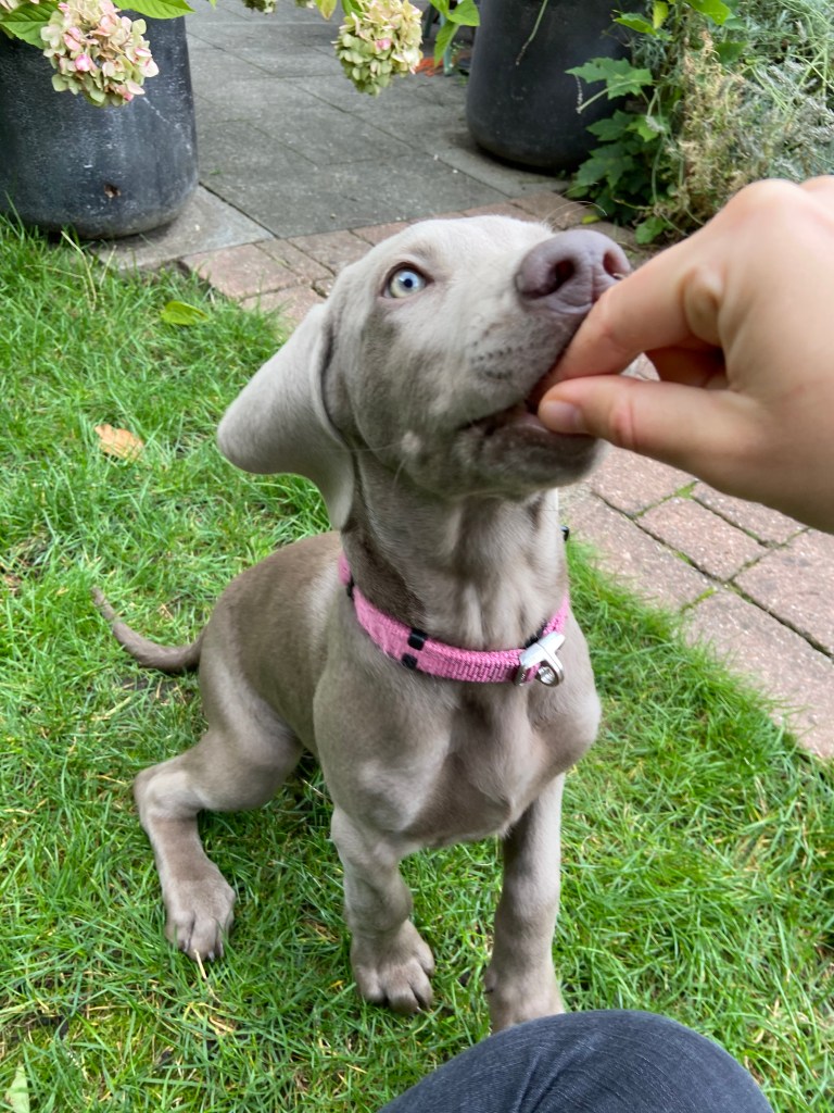 At this stage, often puppies will nip, not out of aggression, but out of a desire to play [17]. They may also chew or gnaw on household objects, mostly due to teething [17]. I find it best to ignore the puppy’s biting behavior and not engage, as that does not encourage your puppy to think you are willing to play. It can also be helpful to let out a high pitched “yip,” letting the puppy know that their bite went too far. When with littermates, puppies will often bite each other in play behavior, but when one goes too far, they let out a “yip” sound, signaling the biting has gone to far [11]. It is important to be patient and not get frustrated, and instead, if your puppy is biting, provide him with a substitute, such as a chew toy. Baby carrots can be great chews for teething puppies, and a tasty, healthy snack as well! Any problem behavior that surfaces in your puppy should be handled right away, as that can prevent more serious problems from developing later.