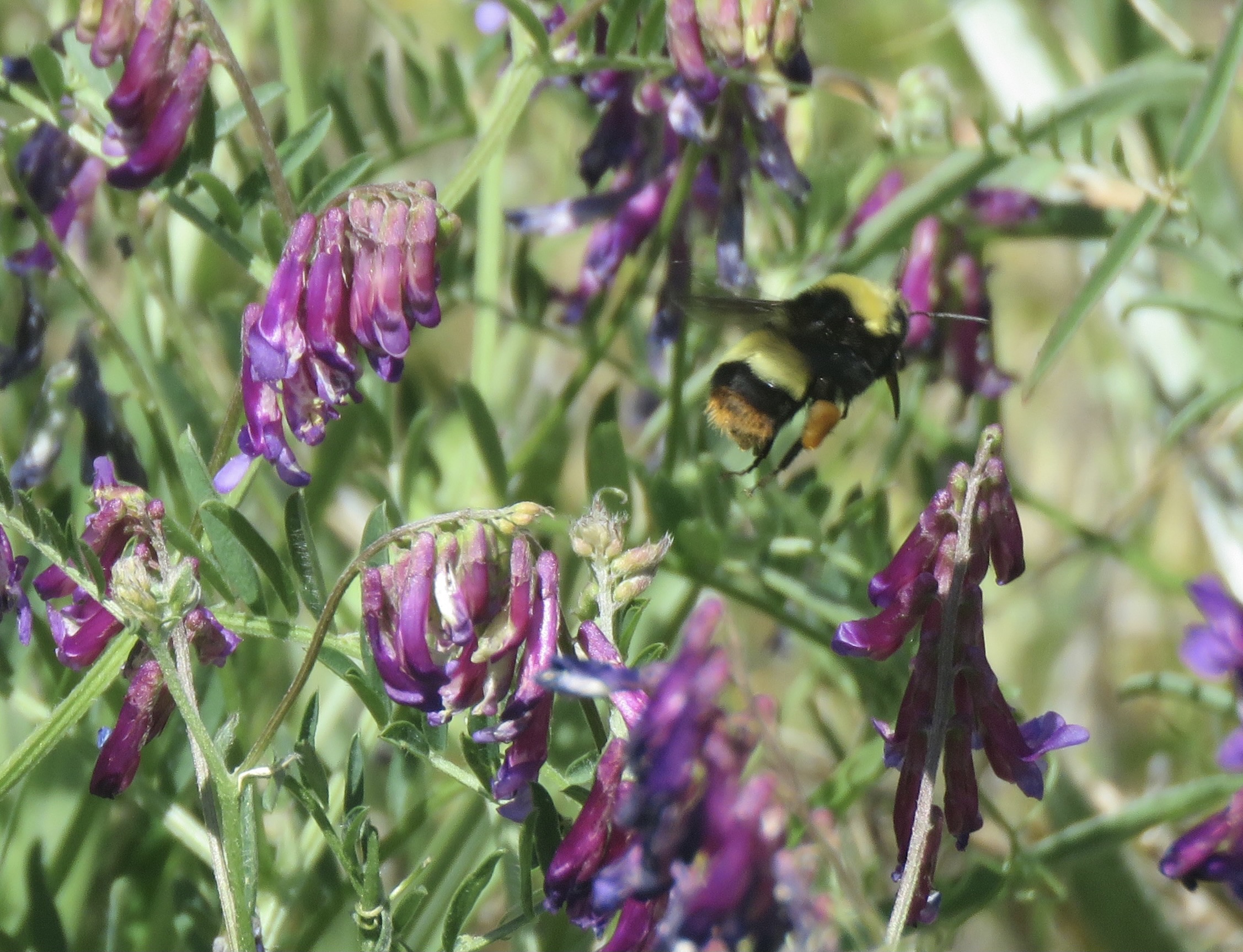 I followed the bumblebees from flower to flower, hoping they would eventually lead me to their nest. Crotch’s bumblebees live in social colonies with non-reproducing workers, a queen bumblebee, and reproductive males [2]. They nest in abandoned rodent burrows, piles of rocks, cavities in dead wood, and old bird nests [2]. The worker bees emerge in spring, foraging on flowers, and are active through the end of the summer. The bumblebee queens overwinter in the nest. Although queen overwintering success is critical to the survival of Crotch’s bumblebee colonies, very little is known about what types of habitats and conditions they prefer to overwinter in [2]. Learning more about their overwintering preferences is important for Crotch’s bumblebee conservation. Although I even followed one of the bees as she visited over 100 flowers, I never did find a nest. Each time I followed one of them, the bumblebee would rocket off at a pace I couldn’t keep up with as a mere human.