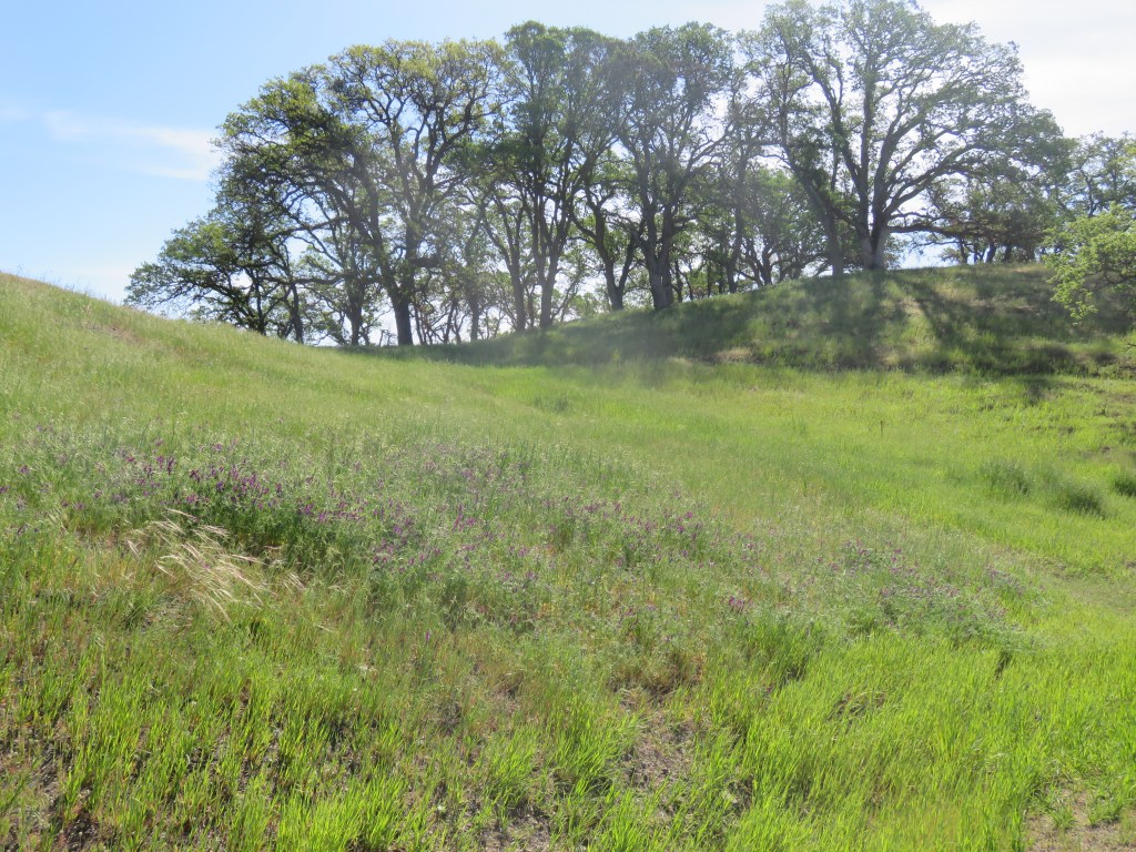 I followed the Crotch’s bumblebee worker from vetch flower to vetch flower before she zoomed off into the hills. I was intrigued. With the help of an intrepid undergraduate, I began surveying different areas of the reserve on the search for Crotch’s bumblebees. We found that the Crotch’s bumblebees visited both non-native flowers such as the hairy vetch and yellow starthistle as well as native flower species such as the foothill larkspur and serpentine sunflower. We saw mostly worker bees but found at least two queens. Watching a queen bumblebee buzz from larkspur to larkspur, I marveled at how such a large, floofy bee could be so majestic and graceful in flight. We found Crotch’s bumblebees in areas of the reserve that had burned during the 2020 wildfires as well as in unburned areas of the reserve.