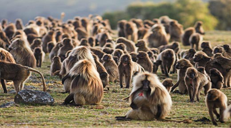 The social organization of the Mandrill is highly complex and one of the least understood social systems among terrestrial old world monkeys. Some research suggests that this species exhibits a multi-tiered social system consisting of one-male units (social grouping that consist of one adult male, several adult females, and their offspring) that congregate into larger amalgamations termed “hordes” [5,6]. Hordes have been recorded to reach an average size of ~620 individuals, with some reports indicating hordes can reach up to about 845 individuals. This makes the mandrill horde the second largest social grouping of any primate species, only outnumbered by the social organization of geladas (Theropithecus gelada) in the Ethiopian highlands. Geladas also exhibit a complex multi-level social structure, with family units amalgamating into herds of up to 1,200 individuals! The main difference allowing gelada herds to outnumber mandrill hordes is the type of food that these species prefer to consume. While mandrills eat a variety of distributed foods, geladas are dietary specialists that eat mostly grass (and are the only primate species to do so). Since grass is a much more common and widely distributed food resource than any of the plant or animal species that mandrills consume, this allows geladas to congregate in larger social units, as there is less competition among individuals within a population over food resources.
