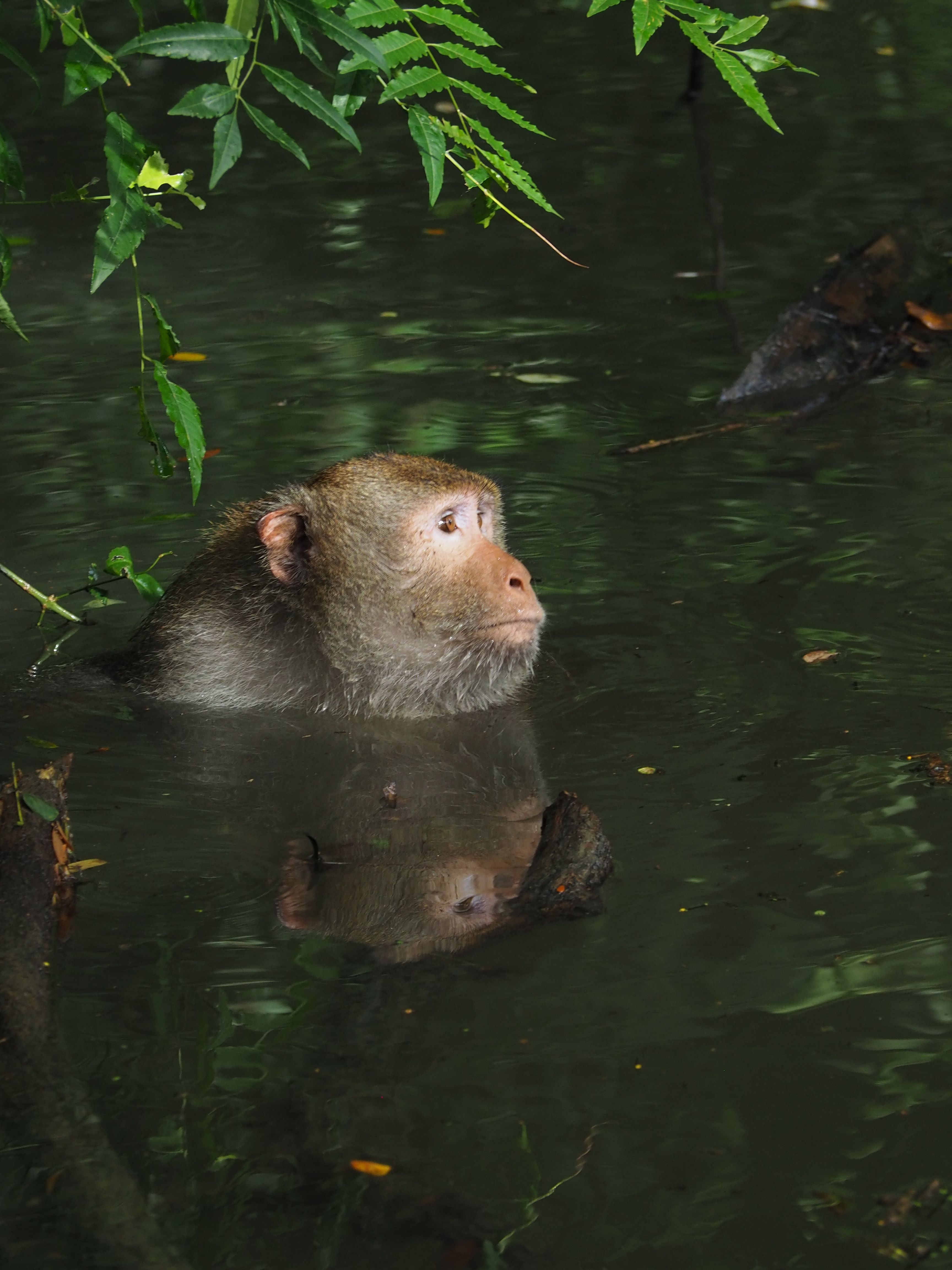 Our very own ABGGer, Nalina, observes social interactions among free-ranging macaques at Wat khao Tamon, Petchaburi province in Thailand with the aim to link their social connectedness with their tuberculosis infections. The long-tailed macaque lives in urban areas and is in close proximity to human settlements, which could lead to disease spillover from humans. This special long-tailed macaque is Beary and he just got chased into the water by some other conspecifics.