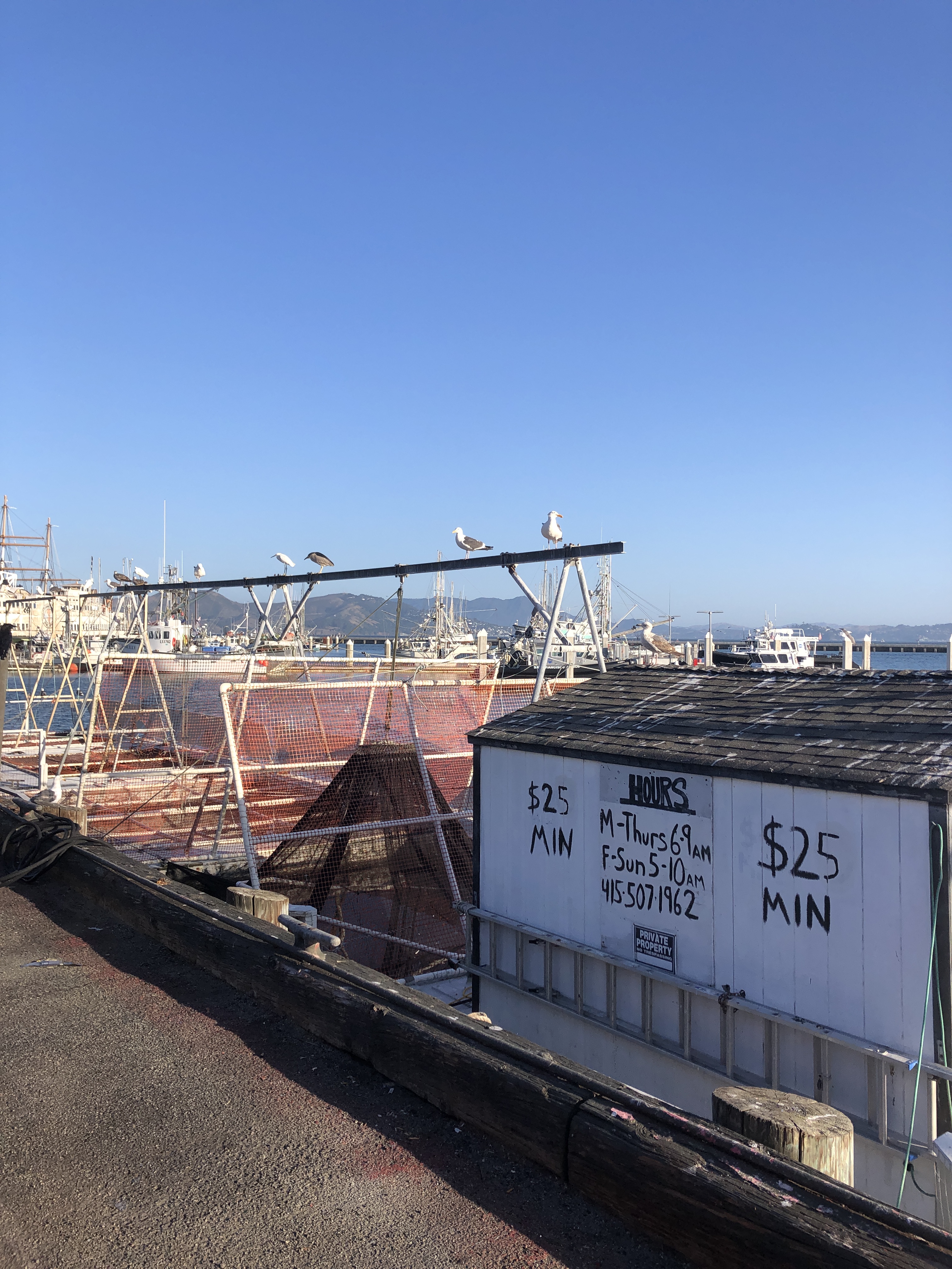 - The last drive I would take over the Golden Gate Bridge at 7am to get buckets of fish from the San Francisco wharf for my feeding trials, surrounded by sea birds hoping for a breakfast feast from a dropped bucket.