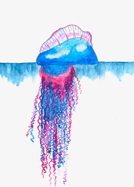 The Portuguese man of war, Physalia physalis, is one of the most mysterious animals to grace our oceans. Their top half, which floats out of the water, is a gas-filled sac that helps them to remain buoyant and catch winds to travel. Their colorful tentacles are what contain the nematocysts, which are responsible for their painful and powerful venomous sting! Be sure to only admire these from afar!