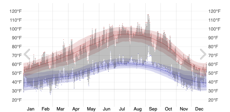 In addition to the animals being a handful, the environment also presents a number of obstacles when completing this type of study. When we began, the average temperature was a pleasant 60-70℉, which steadily increased to a peak of 115℉ in September, and dropped down to the 30s by December (Figure 4). Since our study design required live observations of these animals, observers were outside in all ranges of temperatures, which proved to be difficult at times. Luckily, ample ice water, shade, and hand warmers were available to assure that our observers were as comfortable as possible.