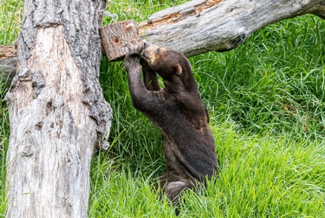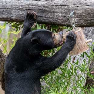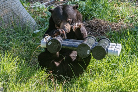 Due to their extensive foraging activities, bears prove to be challenging animals to keep stimulated in a captive environment. They are easily prone to developing stereotypic behaviors (e.g., pacing), a type of abnormal repetitive behavior. These behaviors can be a sign that something is missing from an animal’s environment, and that the animal is currently or has in the past experienced poor welfare. To decrease stereotypic behaviors, provide opportunities to engage in species-typical foraging behaviors, and encourage more decision-making and problem-solving, zoos often integrate enrichment devices that can give animals the chance to work for their food (e.g., feeding enrichment that challenges an animal to spend more time locating, acquiring, and handling their food).