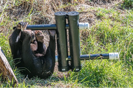Researchers at Sonoma State University recently published a study that investigated whether providing complex feeding enrichment devices decreased stereotypic behavior and increased enrichment use for captive Malayan sun bears (Helarctos malayanus). The Malayan sun bear is native to the tropical rainforests of Southeast Asia, and is the smallest and least-studied of the eight-bear species [1]. These opportunistic omnivores have long claws and strong teeth to help in digging, climbing, and tearing into logs.