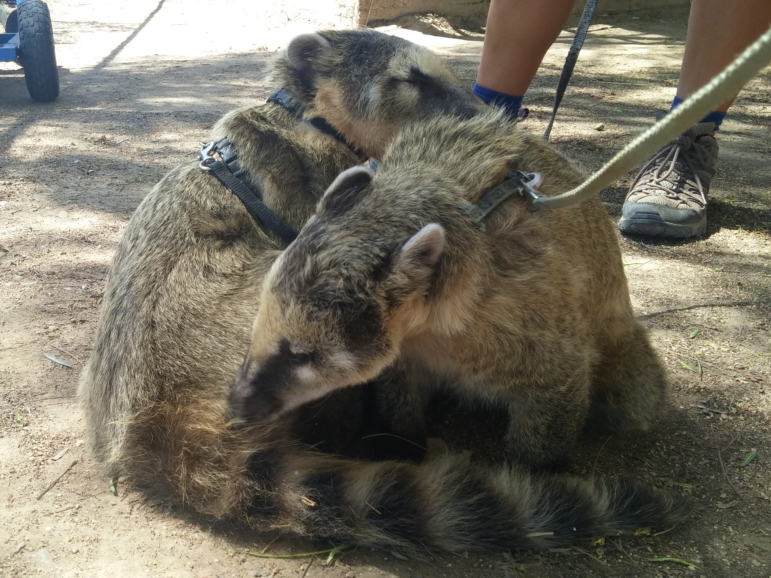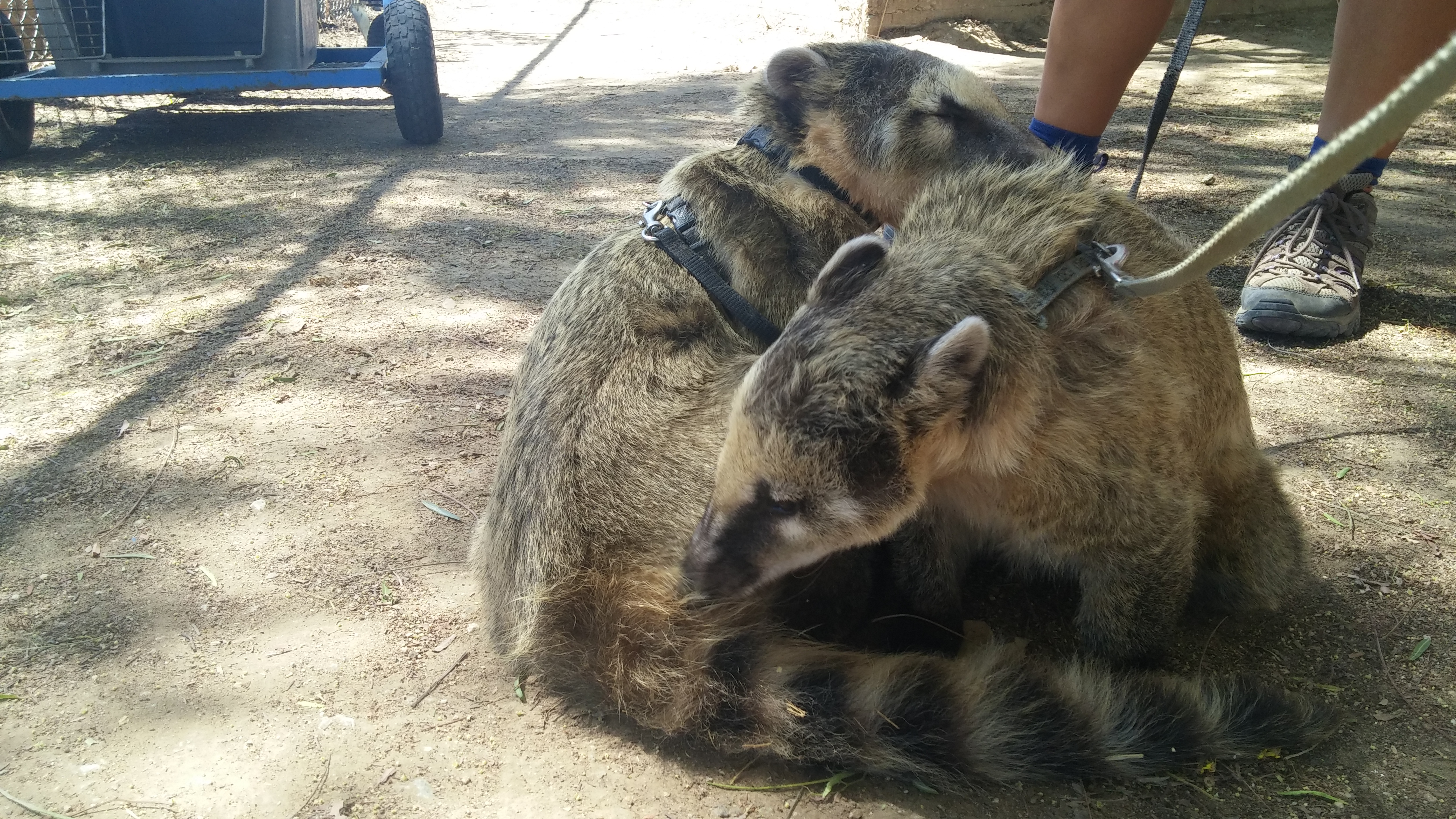The next step in my journey was at the Exotic Animal Training and Management Program at Moorpark College, a 2-year program dedicated to formally training zookeepers and animal trainers. It was there that I learned what I was truly capable of when I put my mind to something, and that data collection and research could be used to make real change. There, I worked with a pair of very special coati sisters, Boo and Scout, who had been separated a couple years prior because Boo had undergone surgery and was still recovering. Female coatis are very social animals, but the staff had serious concerns about reintroducing them. There was a possibility of Boo reinjuring her back, and Scout would not be able to perform her natural climbing behaviors in the special enclosure modified for Boo. As part of a class assignment, I spent 30 hours observing Scout and found that she no longer used the vertical space in her enclosure except when her trainers placed food on high branches. I used this information to convince the veterinary and animal care staff to allow us to slowly reintroduce Boo and Scout. Although it was a long process, the two sisters were eventually reunited and were inseparable for the remainder of their lives. It was then that I knew I wanted to spend my career improving the lives of other animals the way I had for them.