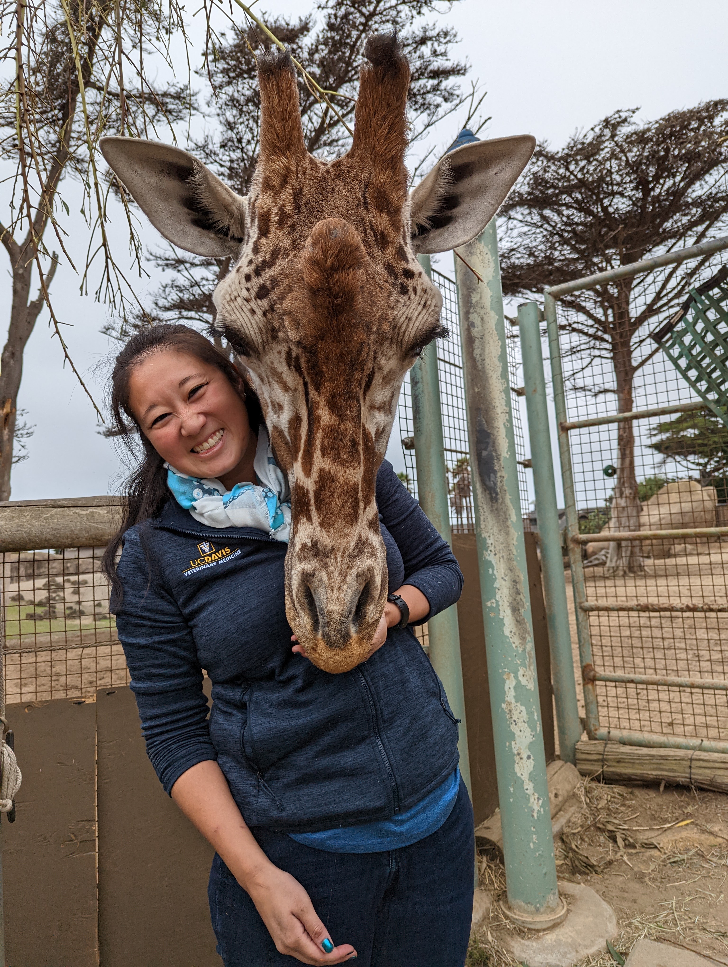 As a PhD student, I am now combining my past experiences as a zookeeper, animal trainer, and veterinarian to study the benefits of training in improving animal welfare at zoos. I spent the first few months of graduate school visiting all the zoos in the area, reaching out to my zookeeper and veterinary contacts to brainstorm ideas for my research. I started with the San Francisco Zoo, where they have trained their giraffes to voluntarily participate in physical exams, blood draws, and even chiropractic adjustments. I visited the Sacramento Zoo and Oakland Zoo to discuss ways to incorporate my medical background into my research. And finally, I visited Six Flags Discovery Kingdom, where all their dolphins are trained to voluntarily participate in blood draws, x-rays, and even open their mouths to have their teeth brushed! Although every facility I visited was doing incredible things to improve the lives of their animals, the dolphin trainers at Discovery Kingdom were working on some amazing training ideas to offer their animals more choice and control over their daily lives. They also shared my pure enthusiasm for training and research, making it a fantastic fit for both of us. Stay tuned for future Field Notes where you may see some updates on our work together!